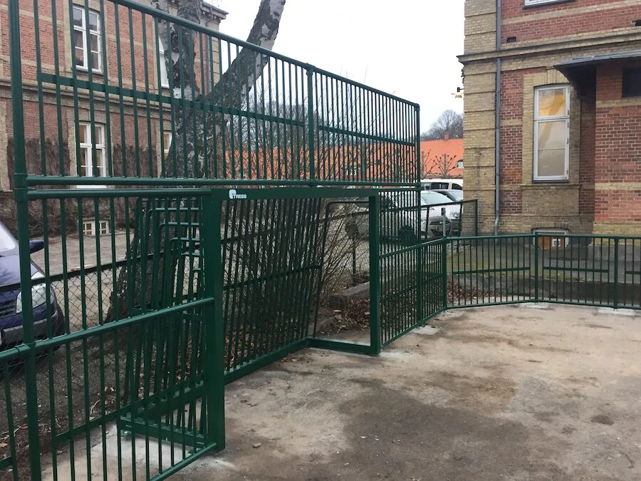 Dybde 90 cm.med en side åben som indgang. Forberedt til mont. af basket beslag Kurvhøjde: 260 cm. Udhæng 60 cm. Dybde 90 cm.med en side åben som indgang. (Højre side set forfra). Testet efter DS/EN 15312/A1:2010
