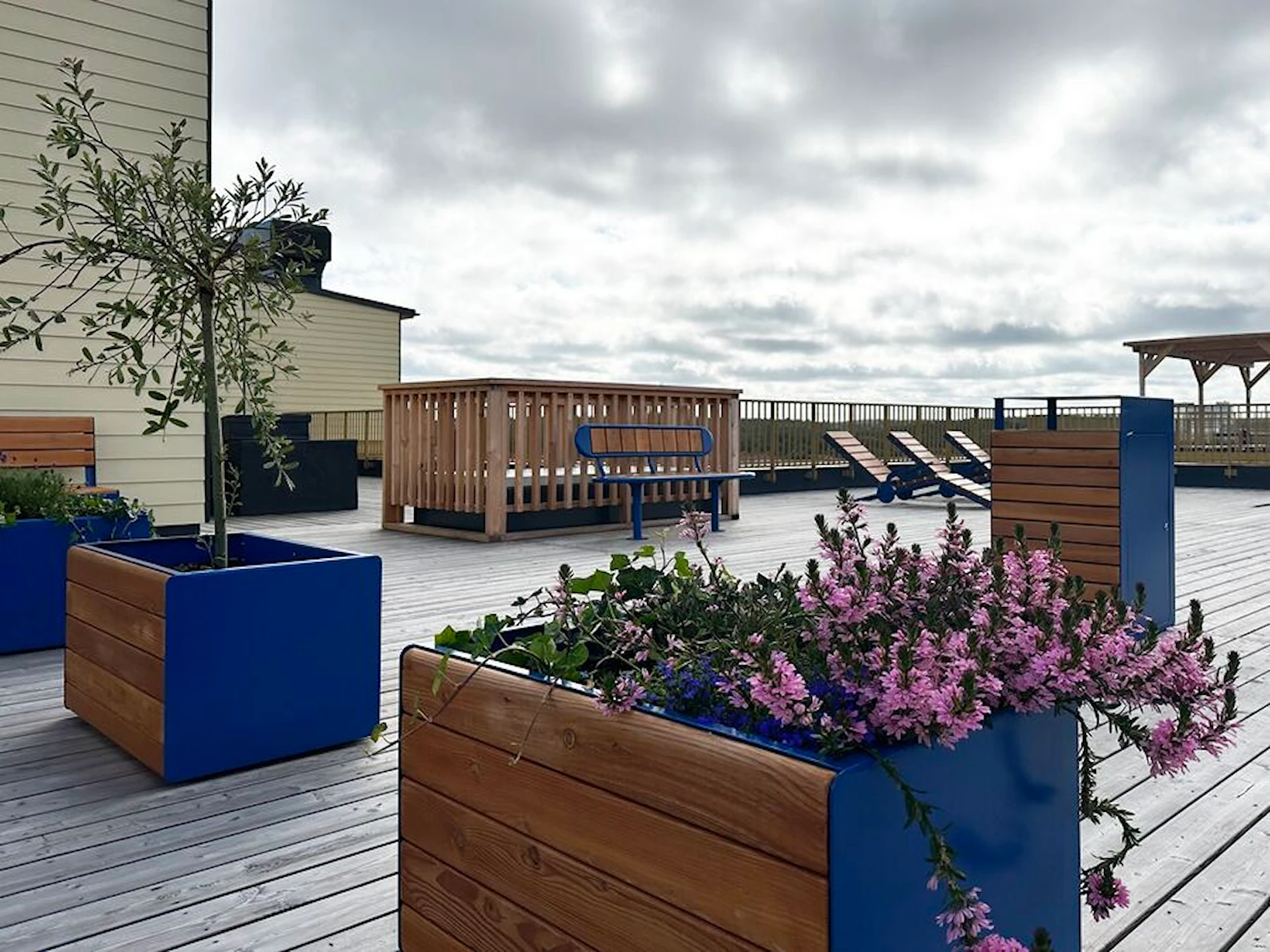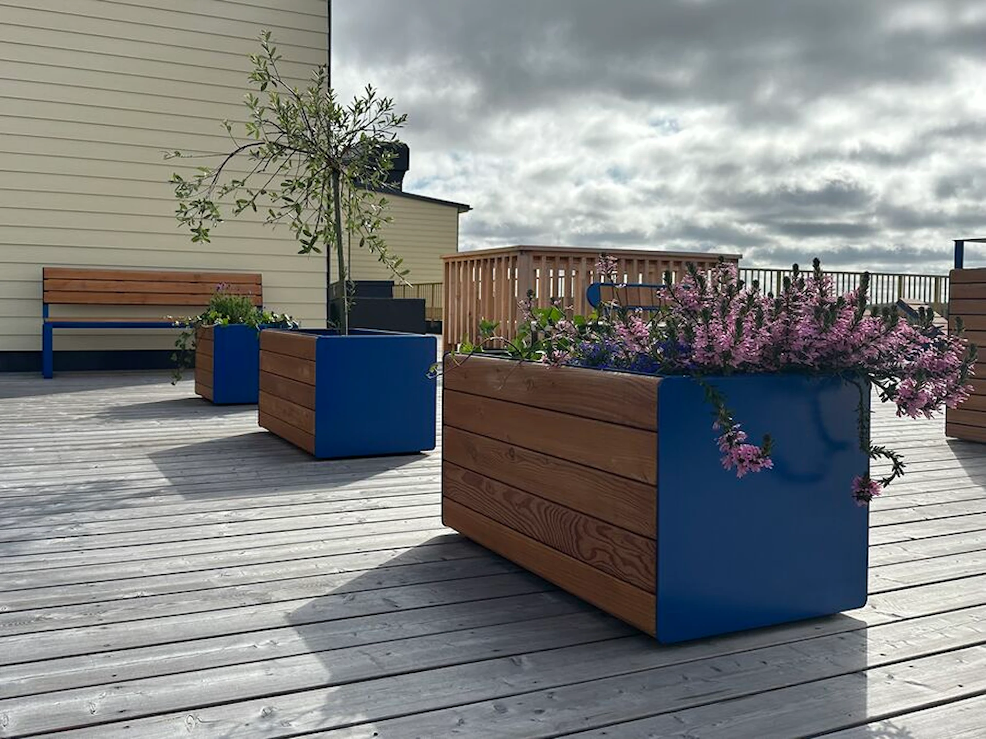 - Træ : Træ er et naturmateriale og bør tilses jævnligt for revner, splinter og generel slitage. Rengør med en blød børste eller fugtig klud. For at forlænge levetiden anbefales det at behandle træet med egnet træbeskyttelsesmiddel efter behov og altid sikre, at kontaktflader mod jord holdes fri for konstant fugt.