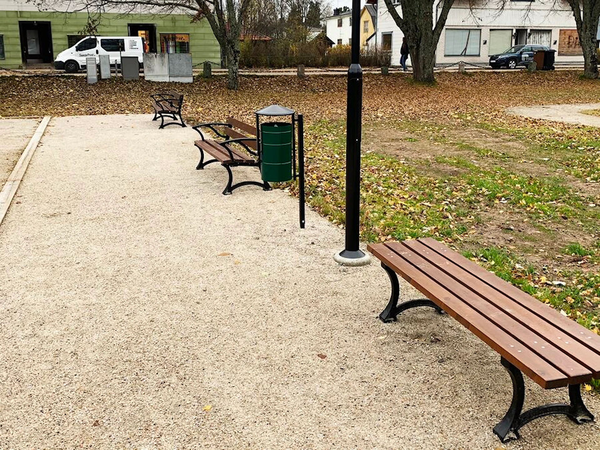 - Træ : Træ er et naturmateriale og bør tilses jævnligt for revner, splinter og generel slitage. Rengør med en blød børste eller fugtig klud. For at forlænge levetiden anbefales det at behandle træet med egnet træbeskyttelsesmiddel efter behov og altid sikre, at kontaktflader mod jord holdes fri for konstant fugt.