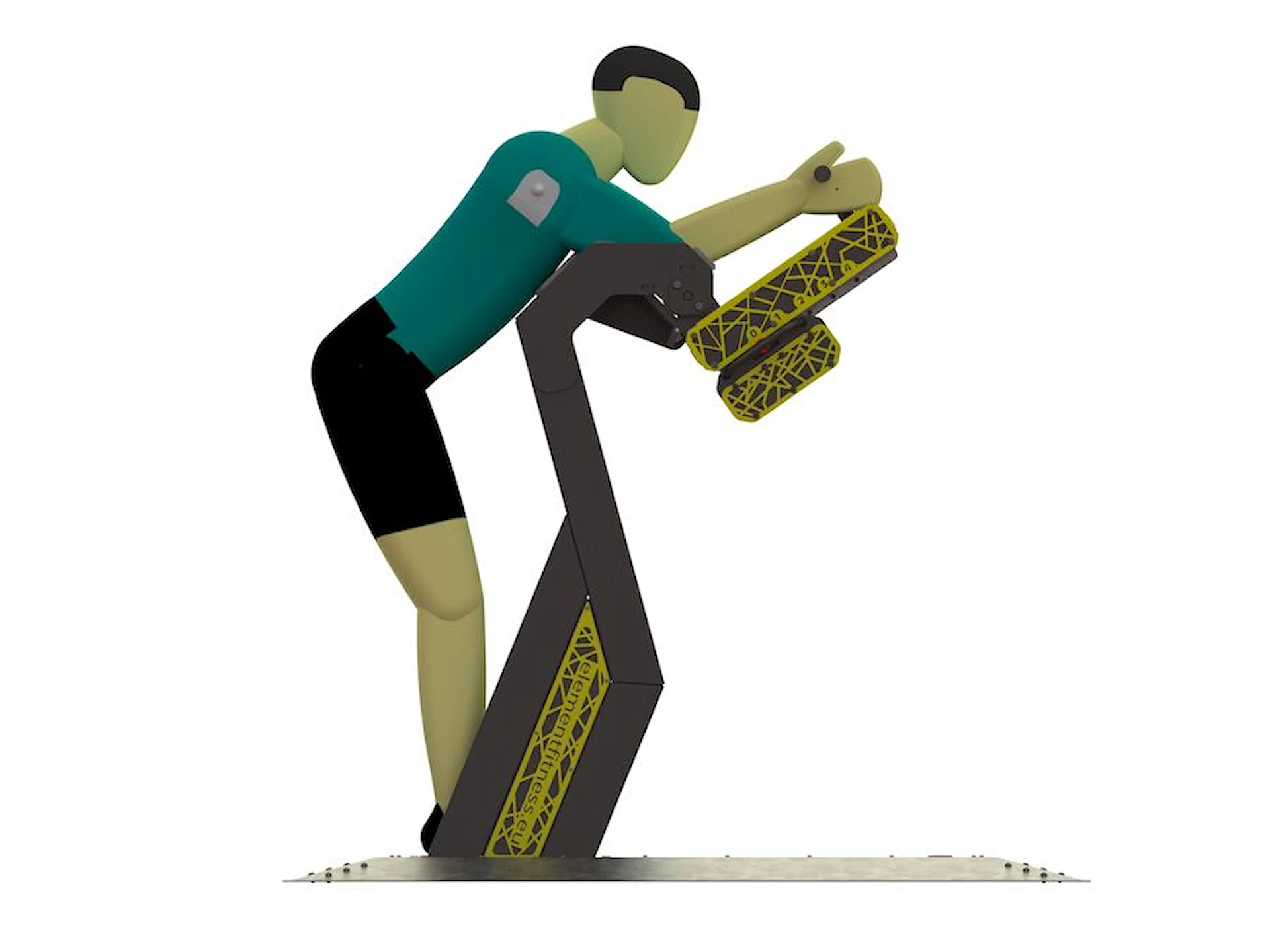 Det er nemt at skabe et inspirerende udendørs fitnesscenter med ElementFit-træningsmaskinerne. Her kan der med fordel suppleres med et større træningsstativ for også at give brugerne mulighed for funktionel træning.