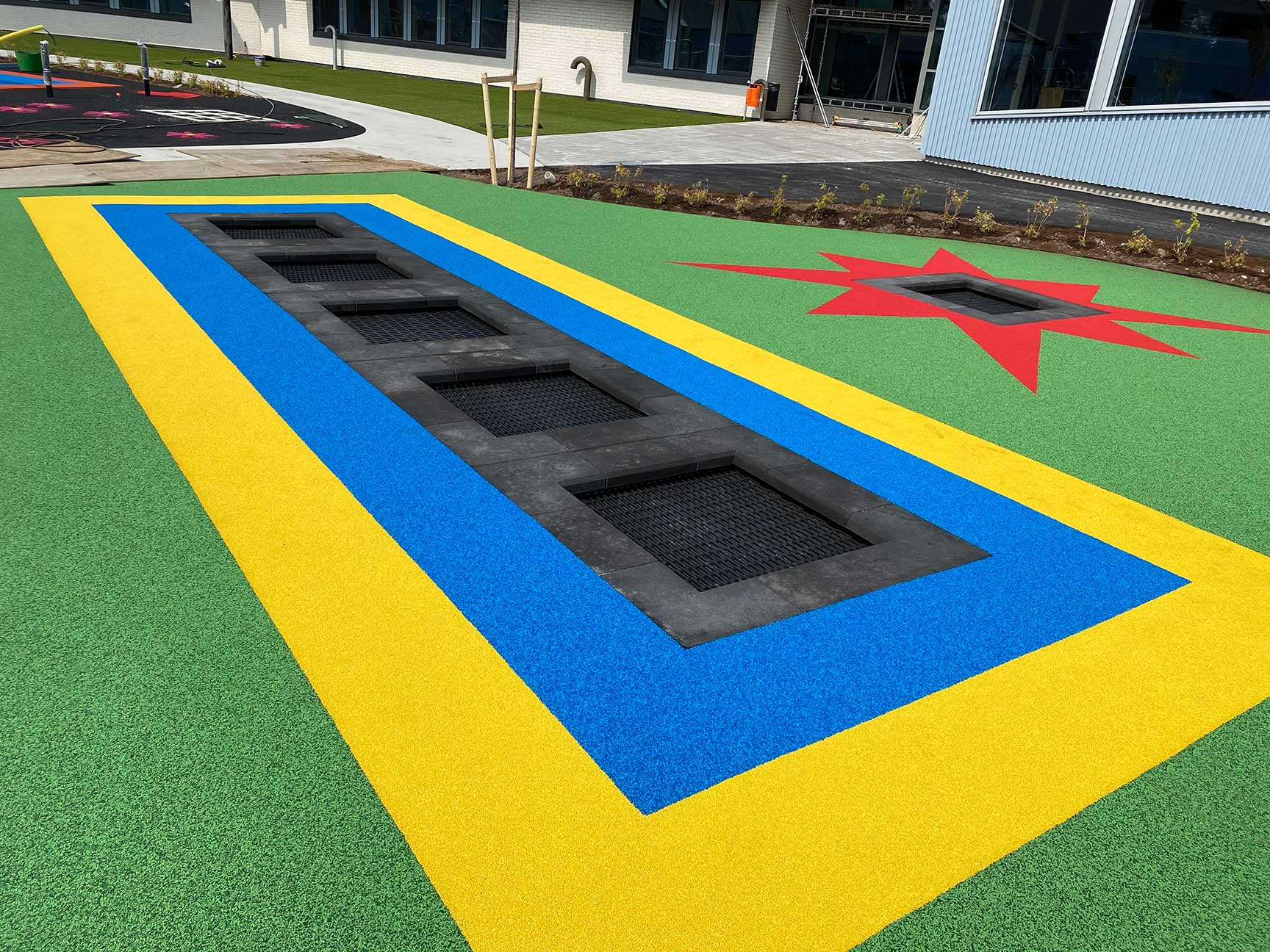 Hos TRESS finder du trampoliner til nedgravning, der passer til alle udemiljøer. Vælg mellem trampoliner i forskellige spændende temaer samt i mange forskellige størrelser og former! Hvad med en frø eller en citron? Alle kan være med i legen, da flere af vores trampoliner har ramper til kørestole.
