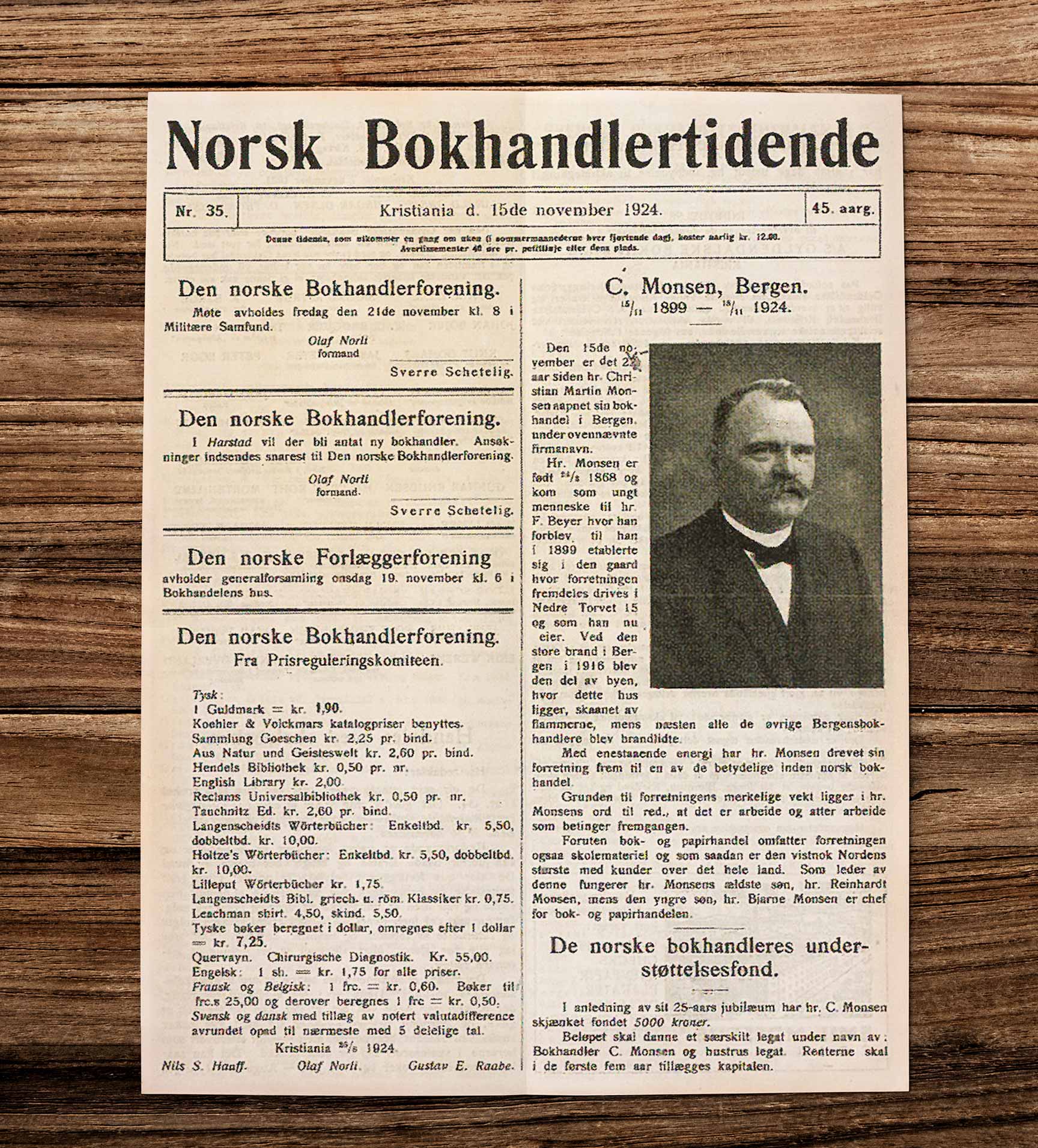 Dagen hvor 31-årige Christen Monsen startede sin egen boghandlervirksomhed under navnet C. Monsen Bok & Papirhandel i lejede lokaler på Torvet i Bergen, Norge.