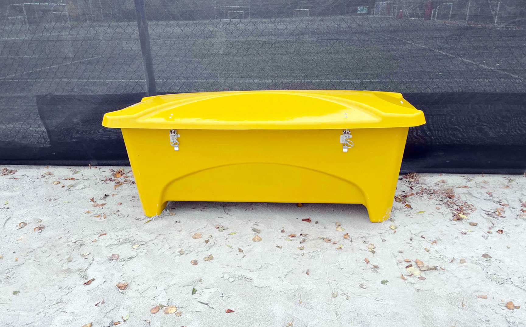 Brug vores praktiske opbevaringsløsninger til udendørs opbevaring af fx sand og vejsalt. De smarte beholdere holder naturligvis til vind og vej – og fås i mange forskellige størrelser og farver, så du kan vælge den løsning til udendørs opbevaring, der passer bedst til dit udemiljø.