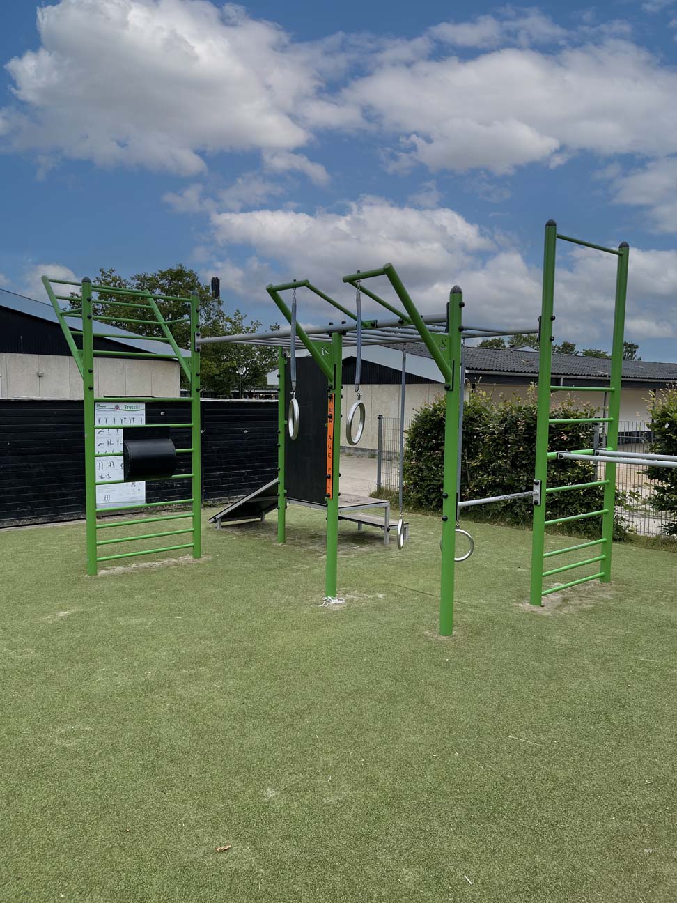 Rørenes diameter er nøje udvalgt for at sikre optimalt greb og balance, hvilket gør det muligt for både tøvende begyndere og erfarne udøvere at få en sikker og spændende træning. De varmegalvaniserede stålrør kan modstå selv de mest krævende vejrforhold, og den store godstykkelse sikrer optimal stabilitet.