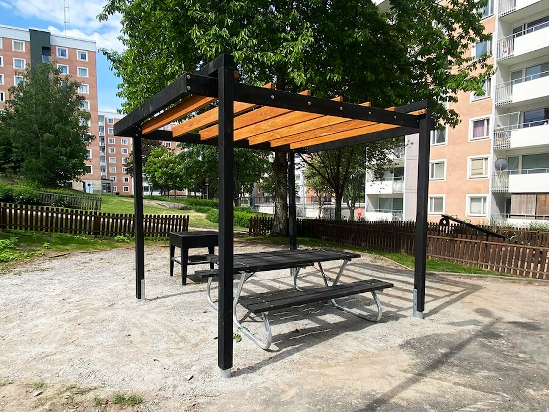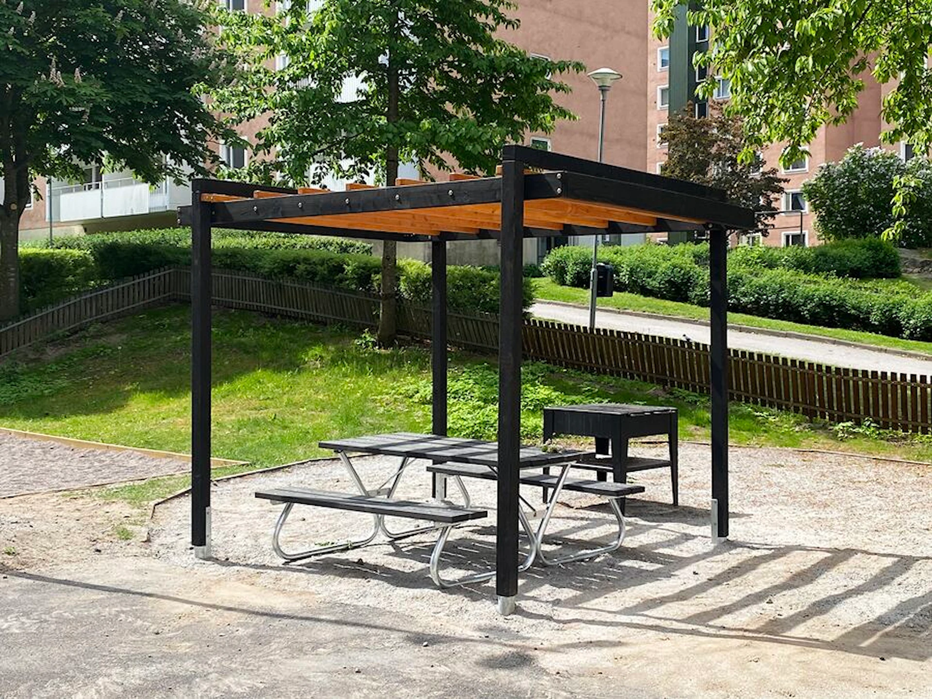 Pergolaen fås i flere udseender og med forskellige antal sektioner. Denne er med 1 sektion.