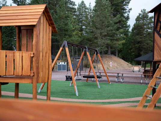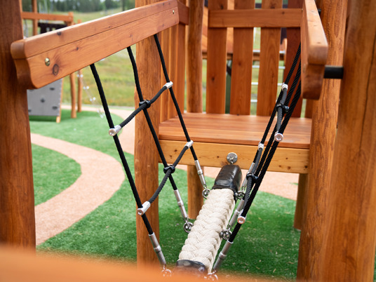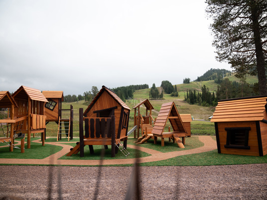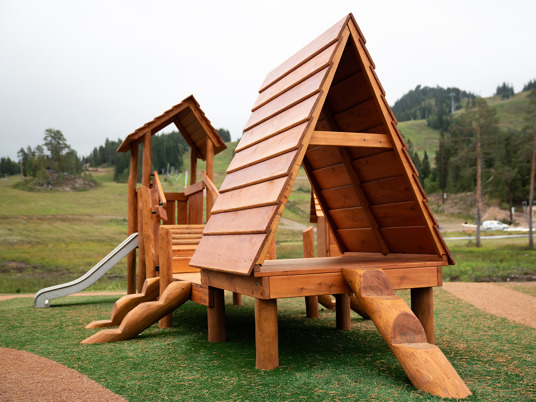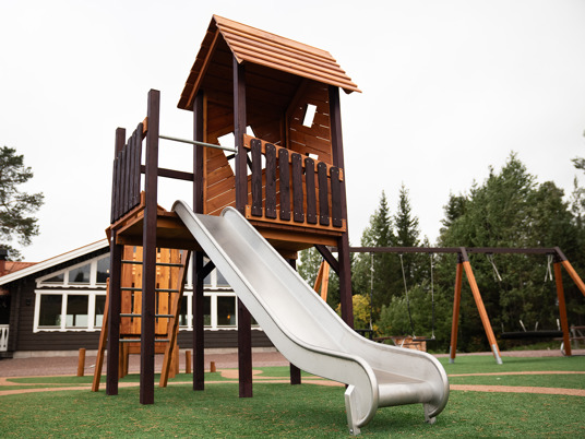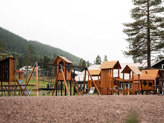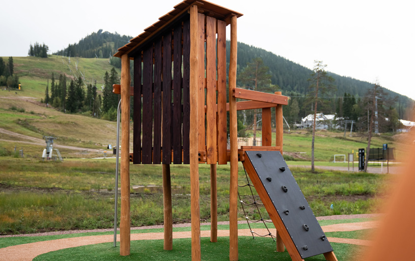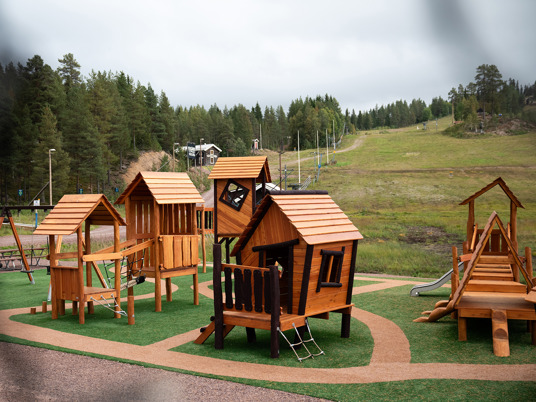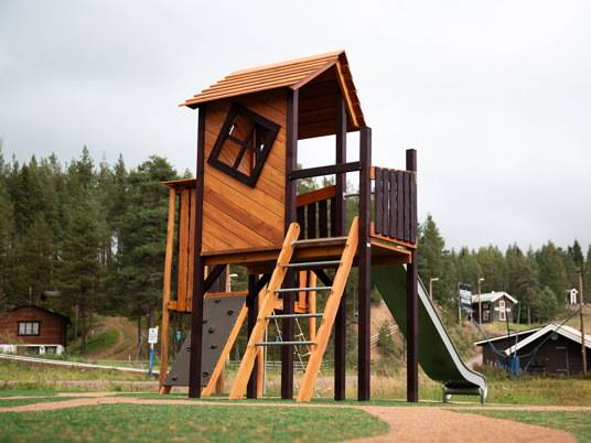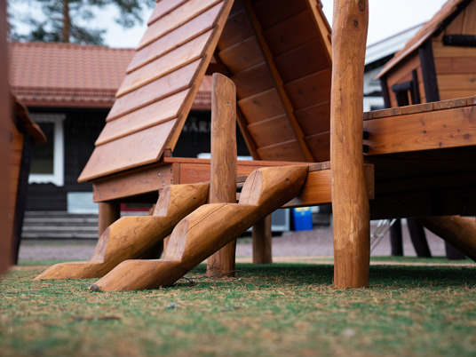 Legepladsen er et skønt mekka for nysgerrige og klatrende børn i alle aldre. Her er der mange forskellige legehuse at lege i, klatre op til eller glide ned fra.