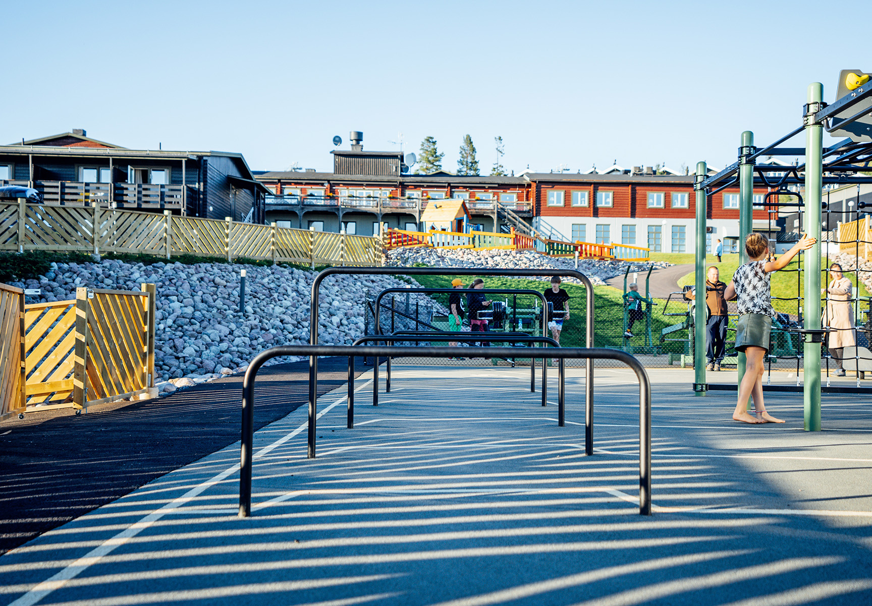 Vi arbejdede tæt sammen med Idre Fjäll for at opfylde drømmen om et aktivitetsområde med plads til både træning og leg for mennesker med forskellige forudsætninger. Det nye område stod klar lige i tide til sommersæsonen 2022. Her er der nu bl.a. et unikt OCR-forløb udviklet i samarbejde med Element Fitness, to padelbaner, boulder rocks, outdoor fitness, legeplads, svømmefaciliteter og en multiarena.
