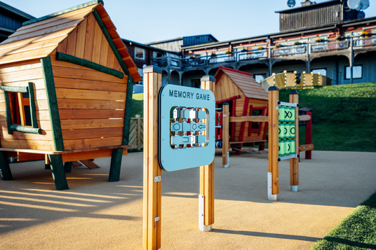 Den fantastiske udsigt er et vidunderligt supplement til de mange forskellige trænings- og legemuligheder. For at binde hele området sammen er der smukt designede parkmøbler fra Mobilis Design i matchende farver.