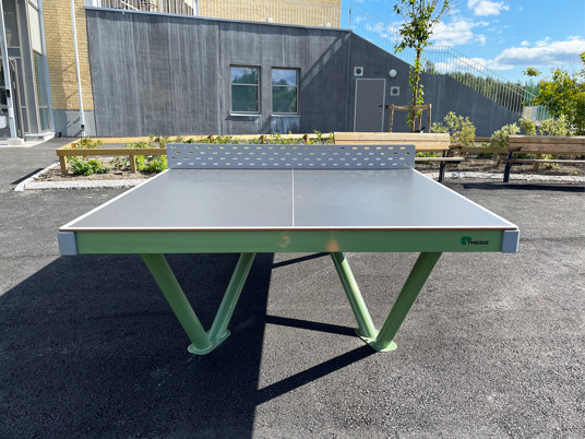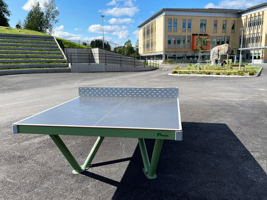 I skolegården kan eleverne spille bordtennis udendørs året rundt. De robuste bordtennisborde kan holde til mange årgange af elever, der vil prøve kræfter med denne populære sport.