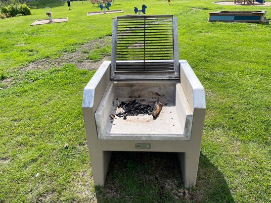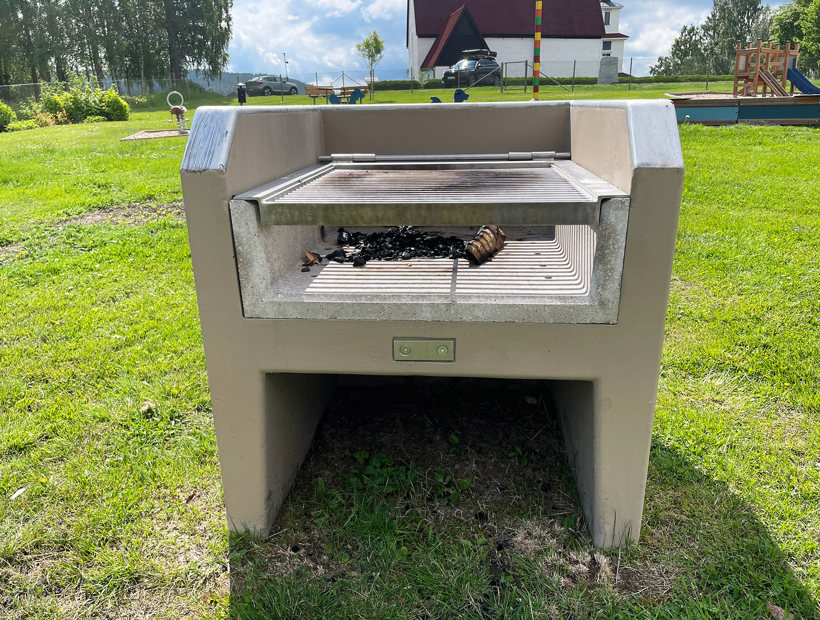 Her kan der holdes mange hyggelige grillaftener. Grillen er fremstillet af beton og er virkelig solid og holdbar. Det foldbare gitter gør det nemt at fylde kul på.