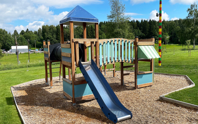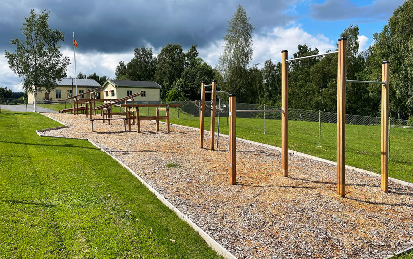 Aktivitetsparken er et stort løft for den lille svenske by Sidensjö. Nu er der både en legeplads til børnene, et udendørs træningsområde med syv forskellige træningsstationer og en dejlig udendørsplads til grill og fællesskab.