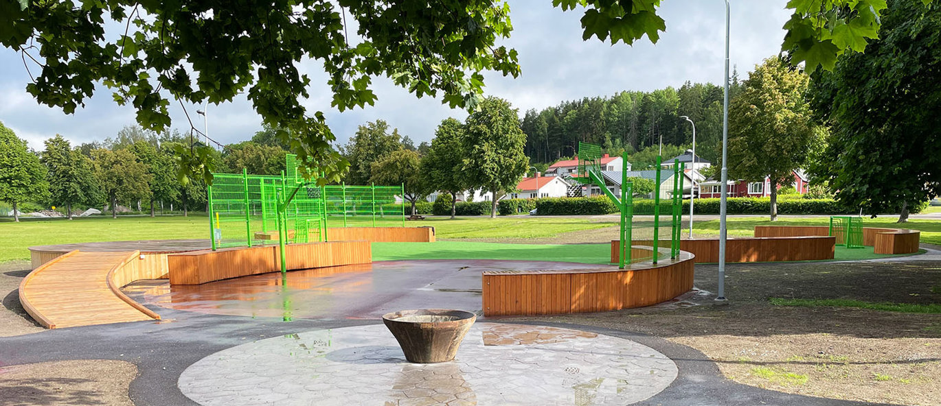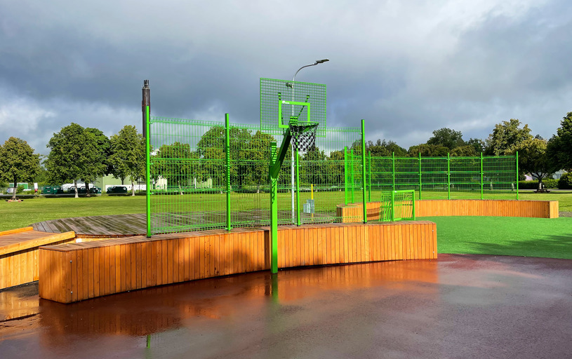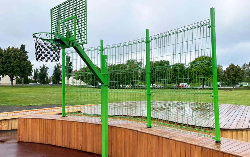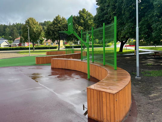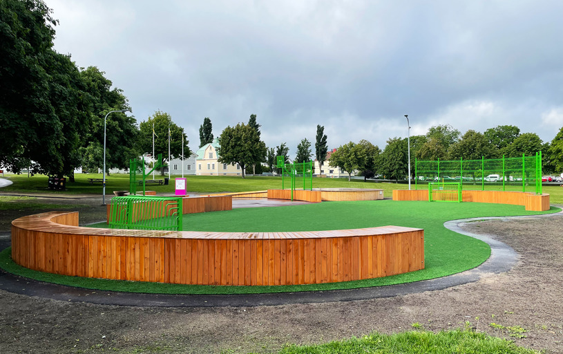 Borgarparken i svenske Hudiksvall, som tidligere kun har været en græsplæne, rummer nu to attraktive InsideOut-multiarenaer, hvor forskellige boldspil og aktiviteter kan udøves. Takket være de komfortable lærketræsmoduler er arenaerne også et godt sted at hænge ud med vennerne og slappe af.