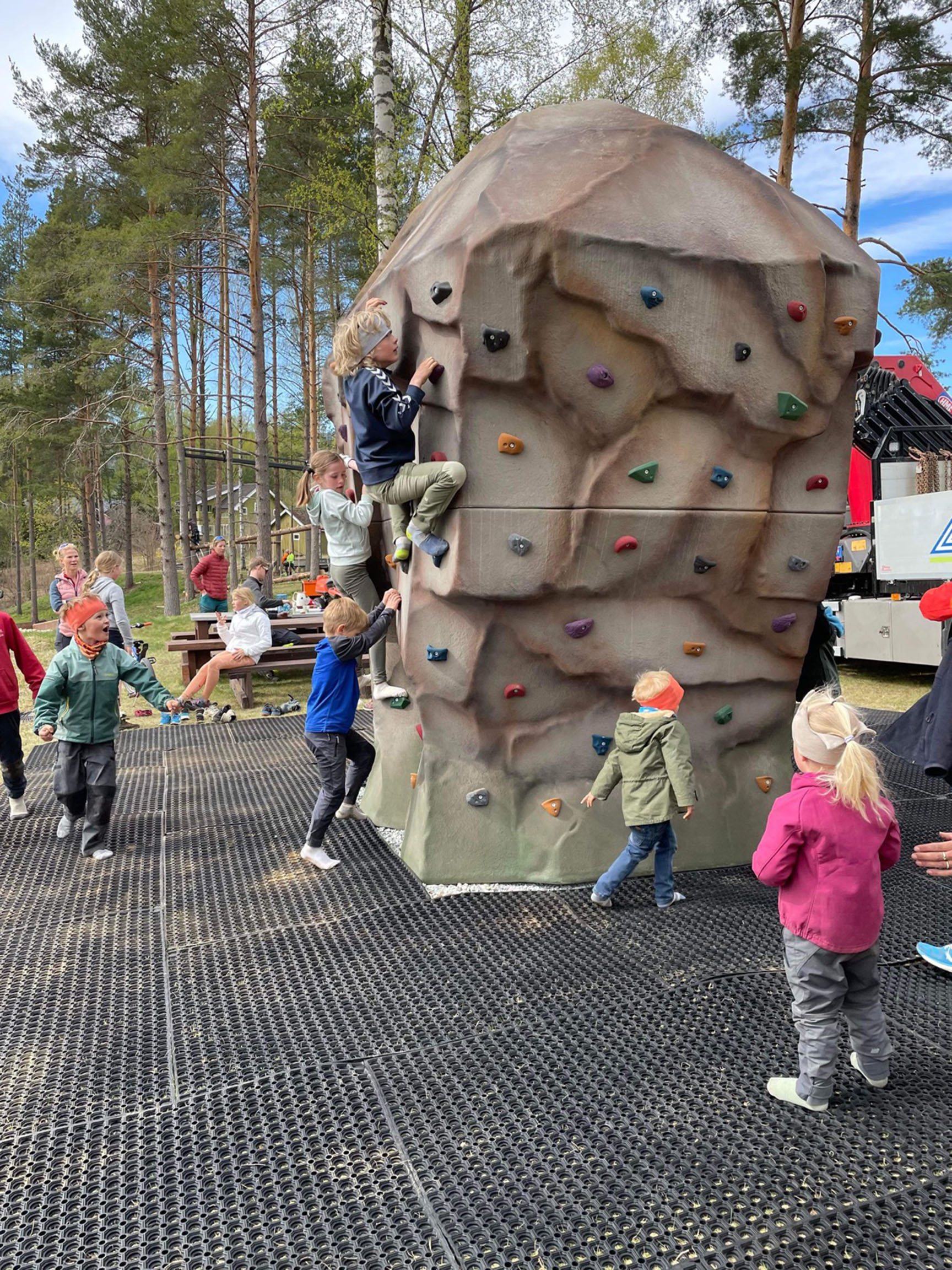 Hos Noresund Velforening i Krødsherad kommune i Norge har vi leveret en flot Boulder Rock, der byder på aktivitet og sjov. Et socialt mødested, hvor indbyggerne kan udfordre sig selv i smukke omgivelser. Med sine 345 cm over jorden og bredden på 220 cm udfordrer klatrestenen både unge og ældre.