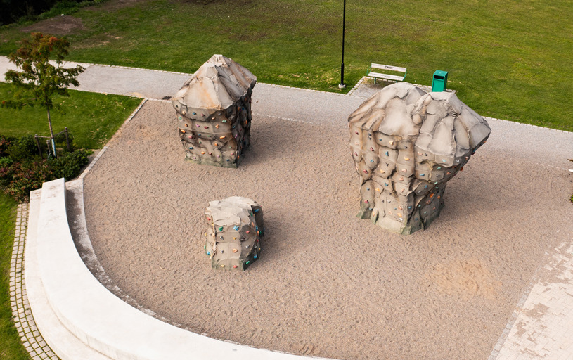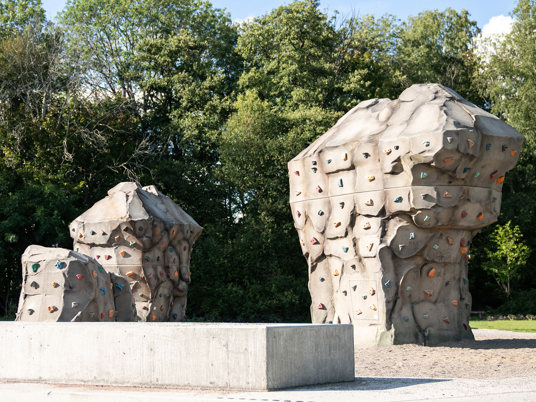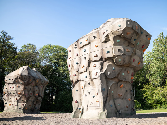 De tre klatresten Boulder Rocks tiltrækker børn og unge – og indbyder til at teste deres klatreevner. Klatregrebenes forskellige farver symboliserer forskellige sværhedsgrader, så alle finder deres rette niveau af udfordring.