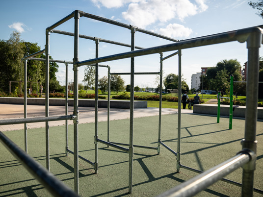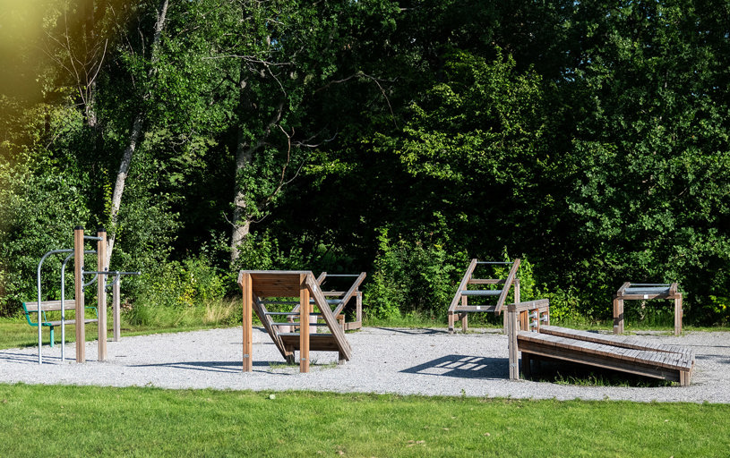 Her er der et udendørs fitnesscenter med syv forskellige træningsstationer. Perfekt, når du er ude at løbetræne og gerne vil afslutte med noget styrketræning. Du kan også prøve kræfter med forhindringsbanen, som består af fire forskellige forhindringer.