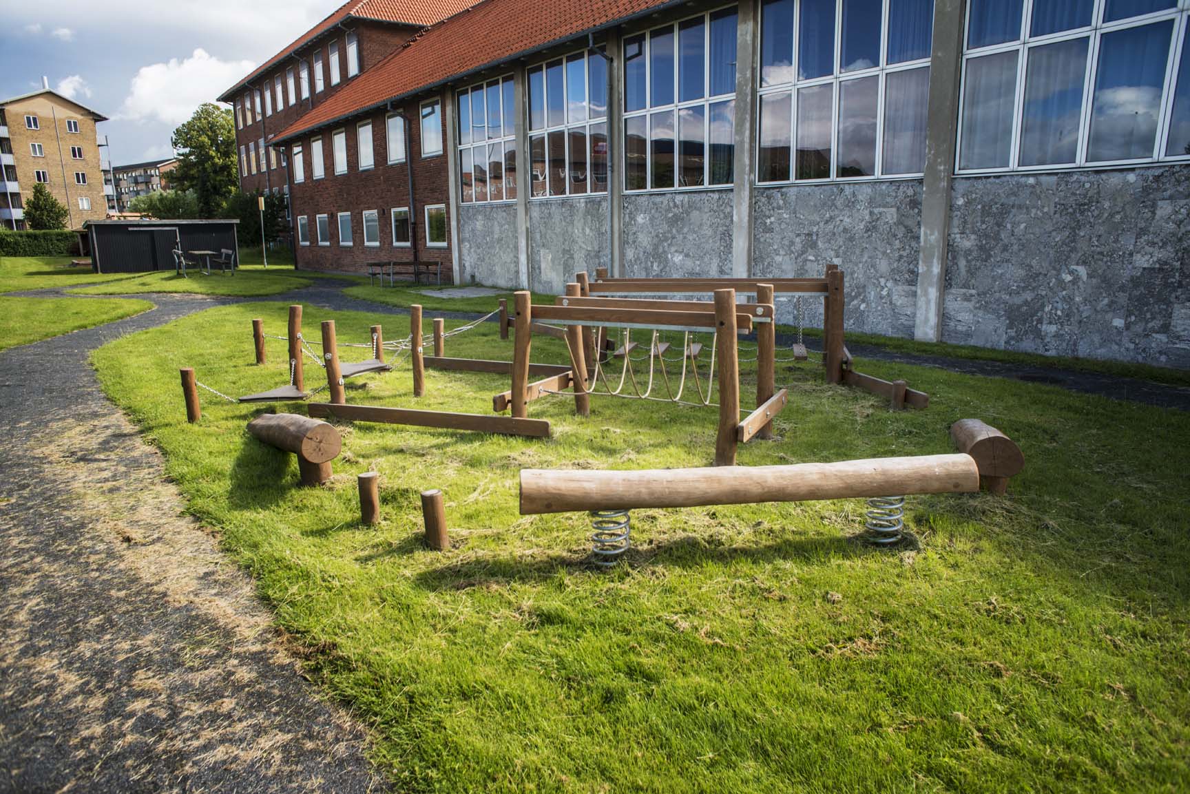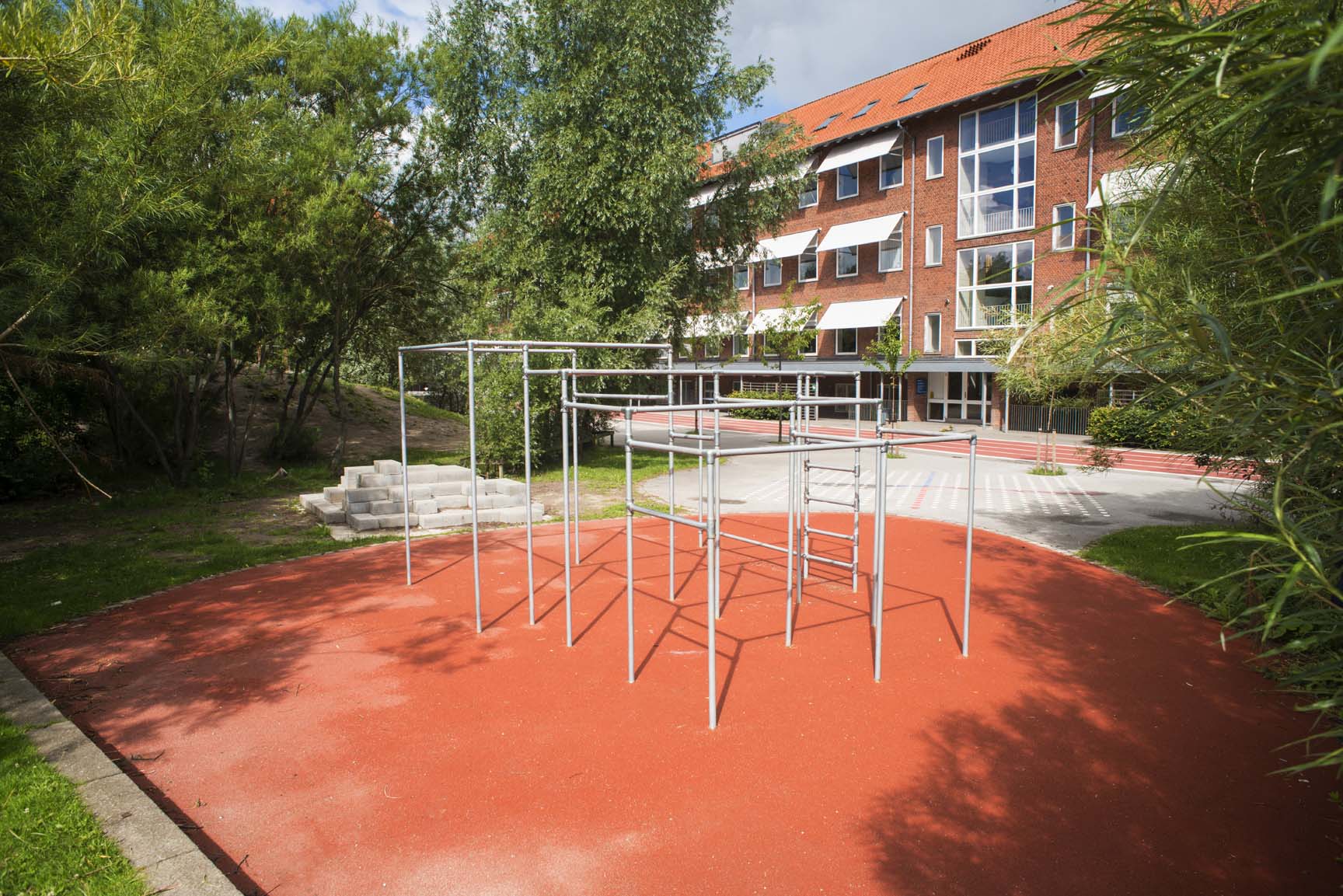 Med både et parkourstativ, klatrepyramide og balancebane er der rig mulighed for at eleverne på Sønderbroskolen kan udfordre deres motoriske evner både sammen og hver for sig. Her får de bevæget sig på en anden måde end normalt – og det er både udviklende og super sjovt!