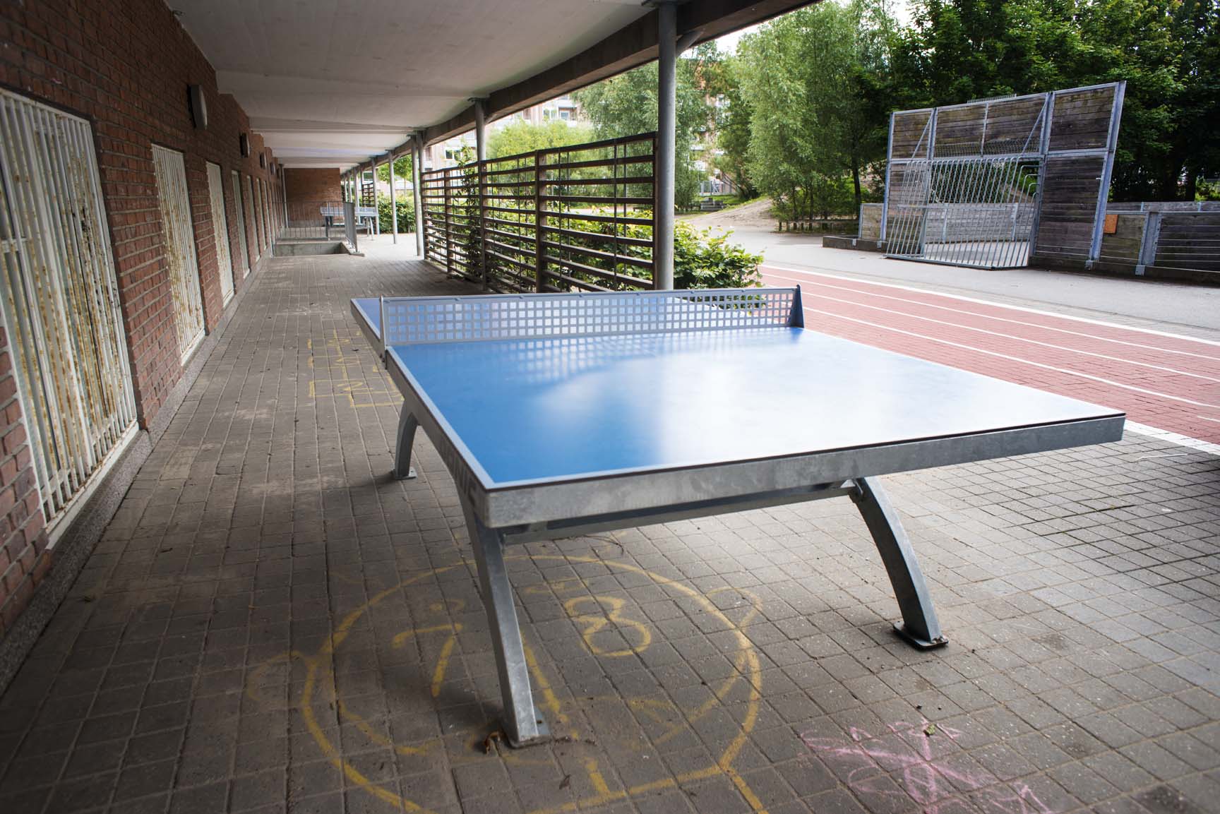 Både streetbasket og udendørs bordtennis er favoritter i skolegården – og det forstår vi godt! Det er nemlig altid sjovt at samles med klassekammeraterne om et spil bordtennis – eller at se, hvem der kan lave flest pletskud på basketballbanen.