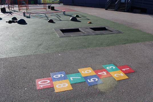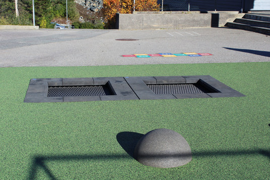 Skolegården rummer nu bl.a. multibane med store og små mål, basketball, Boulder Rocks, bordtennis, parkour-område, forskellige balanceudfordringer, trampoliner, sand- og vandleg, rutsjebaner, asfaltopstregninger, gode sociale opholdspladser og meget mere! Området bliver brugt flittigt fra morgen til aften – og både elever og lærere er meget glade for resultatet.
