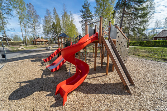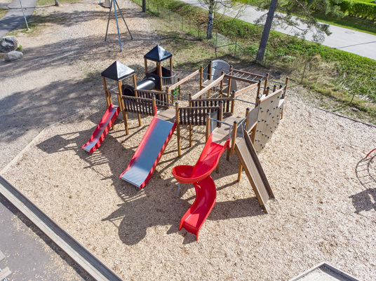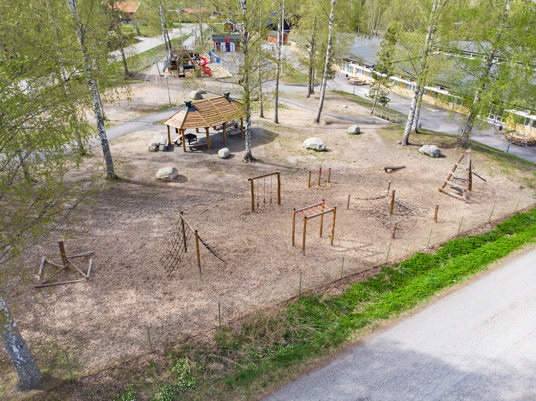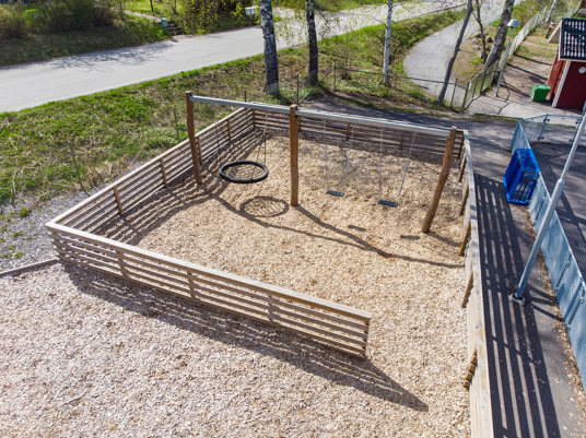 Totalrenoveringen af skolegården på Hagabackens Skole resulterede i mange vidunderlige områder for både børn og undervisere. En populær multibane, der kan bruges til både idrætstime og frikvarter, forhindringsbane og flere legeområder.