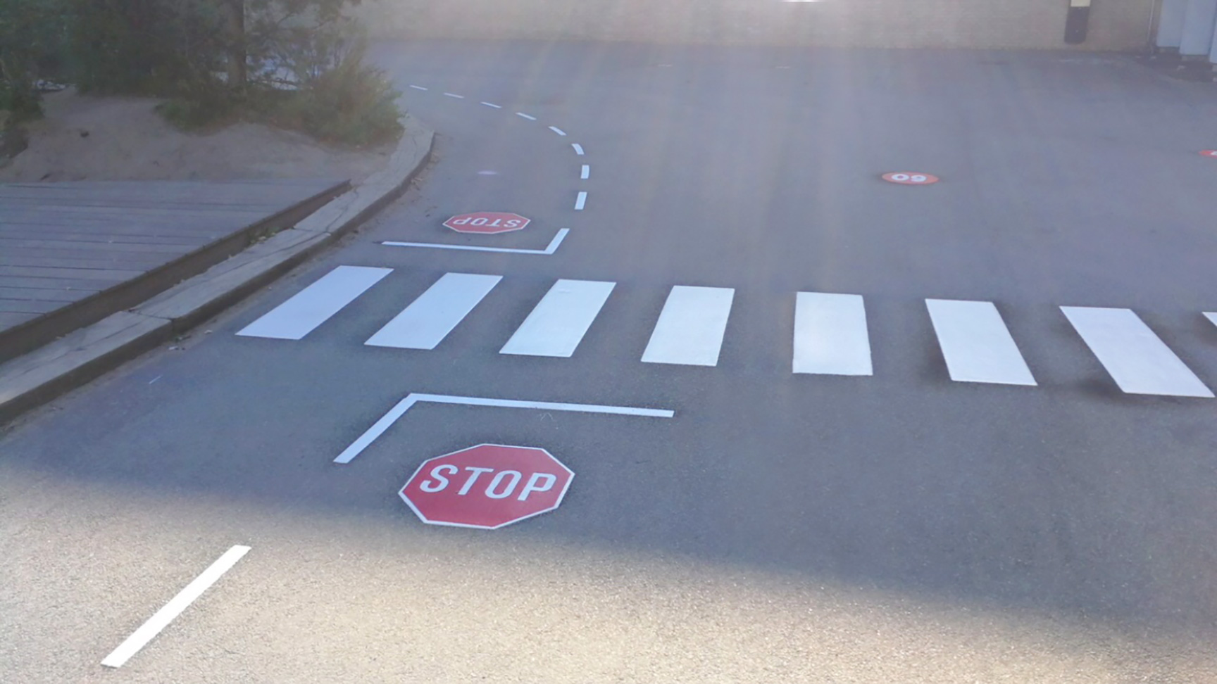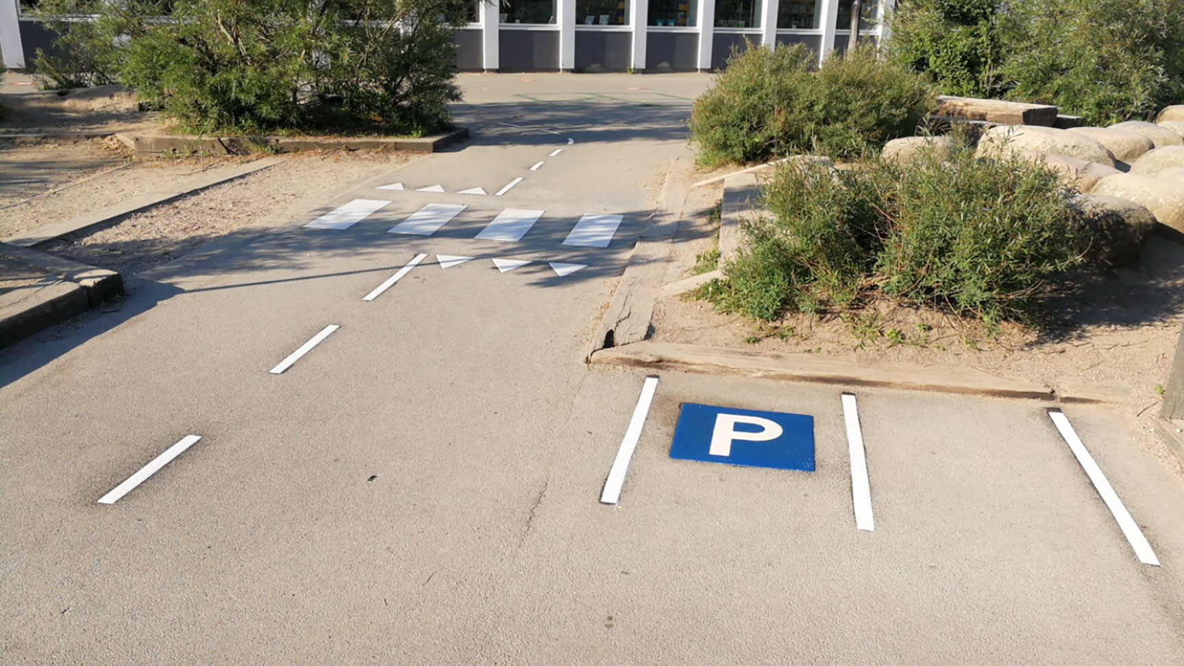 Det er vigtigt at lære børn om reglerne, så de kan begå sig i trafikken – og på Kildegård Privatskole i Hellerup har eleverne en fin optegnet bane med både stoplinjer, hajtænder og fodgængerfelter at øve sig på.