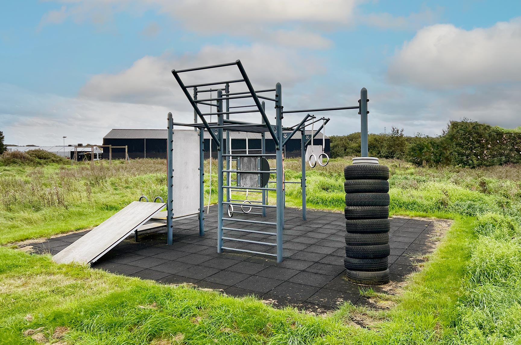 Herningsholm Erhvervsskole ville gerne gøre det mere attraktivt for eleverne at være fysisk aktive på skolens udearealer både i pauserne og efter skoletid. I 2017 leverede vi derfor vores populære træningsstativ til outdoor fitness, TRESSfit, og en af vores populære multibaner i lærketræ. Og det er tydeligt, at det bliver brugt!