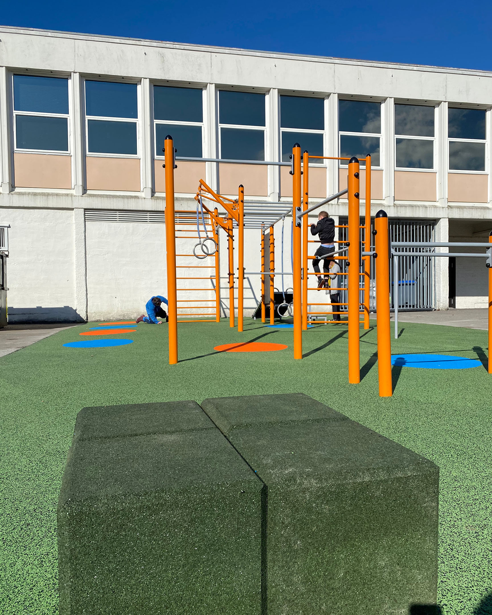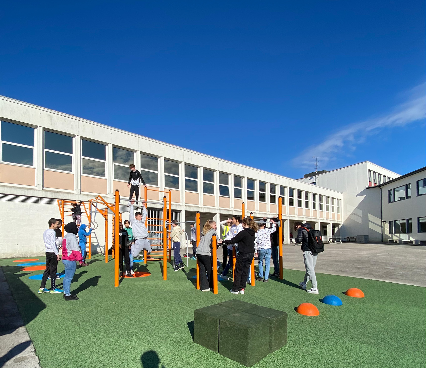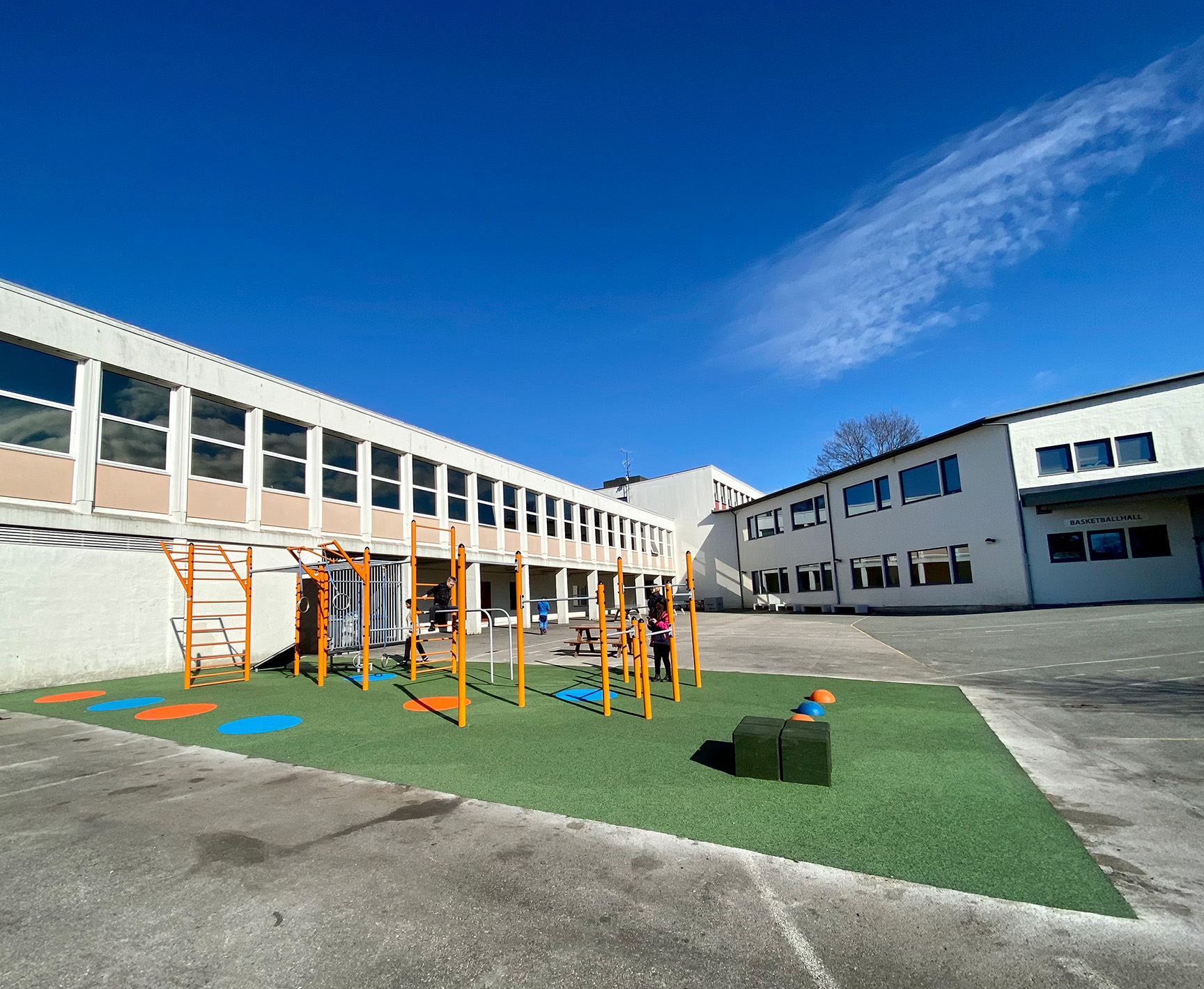 På Hop Skole i Bergen i Norge fik vi til opgave at levere en farverig og aktiv skolegård med varieret, inkluderende og udfordrende indhold. Det resulterede i en spændende og indbydende legeplads med muligheder for både leg og sport med bordtennis, basketball, outdoor fitnessanlæg og klatrevæg. Den nye skolegård sikrer, at eleverne kan lege og holde sig aktive året rundt!