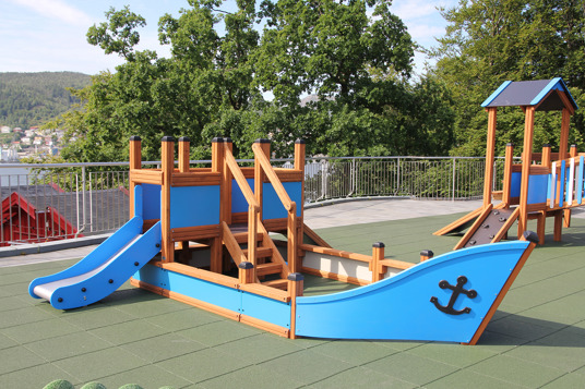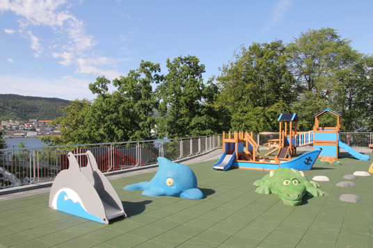Dejlig legeplads med maritimt tema på taget af en af Bergens mest besøgte attraktioner. Sjove aktiviteter for børn fra 2 år og opefter.