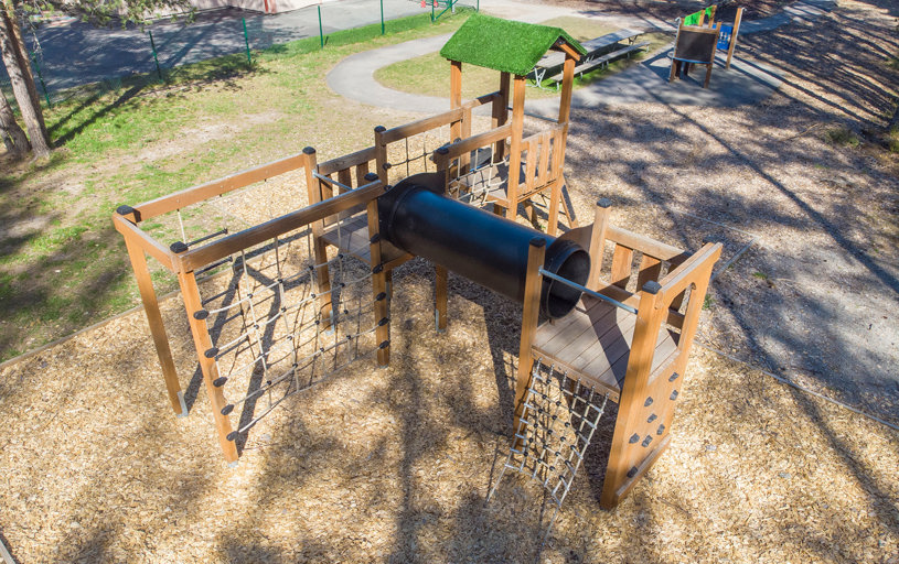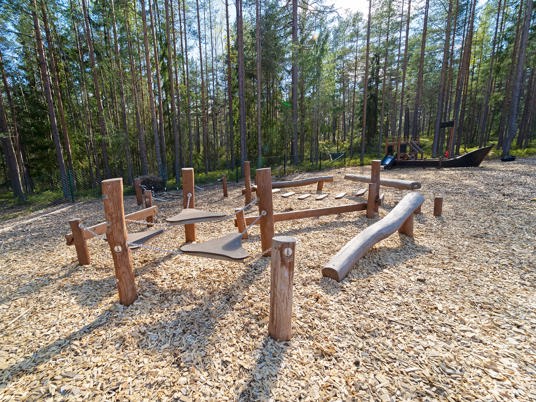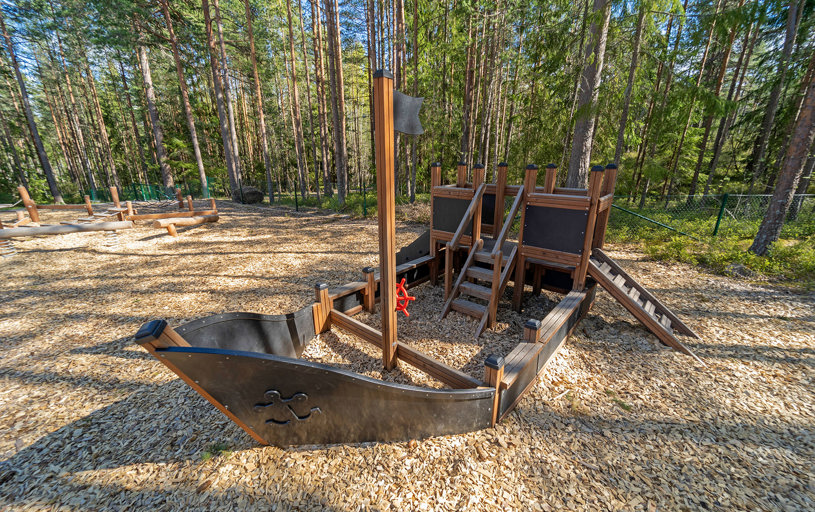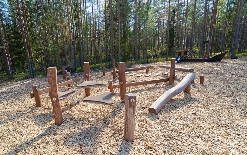Her er så meget legeværdi som muligt: Rolleleg, platformsleg, spændende rutsjebaner, balance- og motoriktræning og udfordrende klatring. Under den åbne himmel får fantasien frit spil.