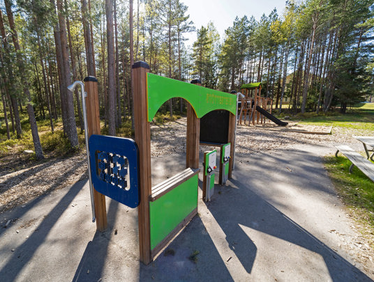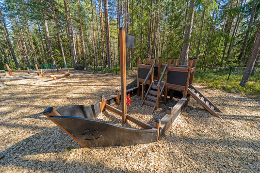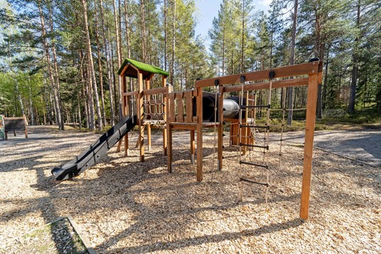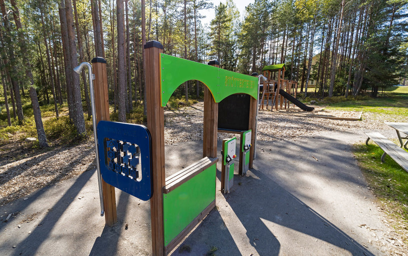 I 2017 fik børnehaven Stöttestenen i Lindesberg et helt nyt udemiljø med en flot naturskøn legeplads. Den dejlige grønne og frodige skovgrund gav et oplagt fokus på naturlige farver og forskellige træmaterialer. Der blev anlagt flere forskellige legeområder med noget for enhver smag! Der er plads til masser af sjov leg på legemiljøet Søndersø, mens motorikken kan trænes på balancebanen og rollelegen flyder på båden og på tankstationen.