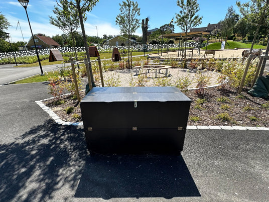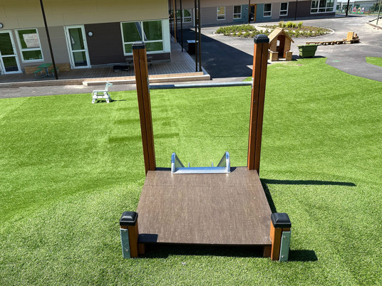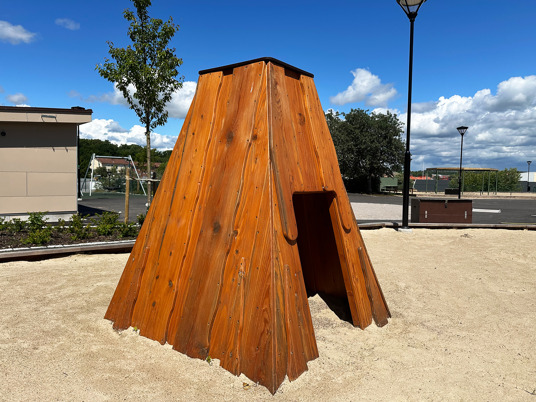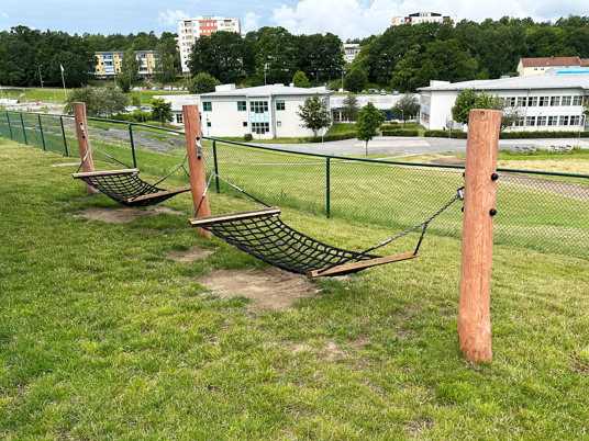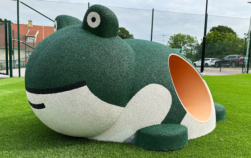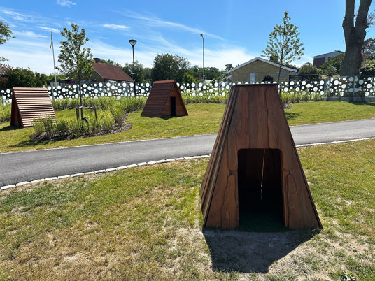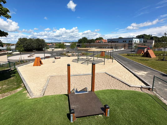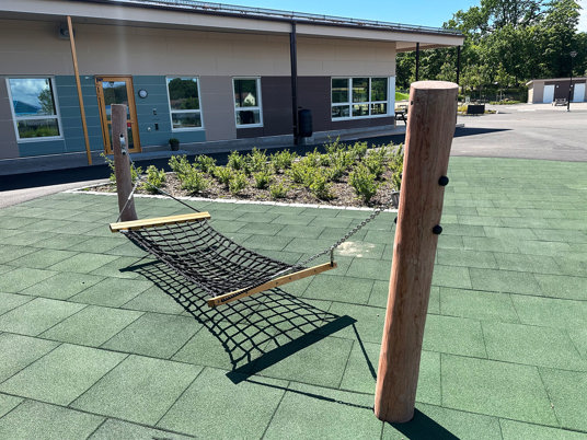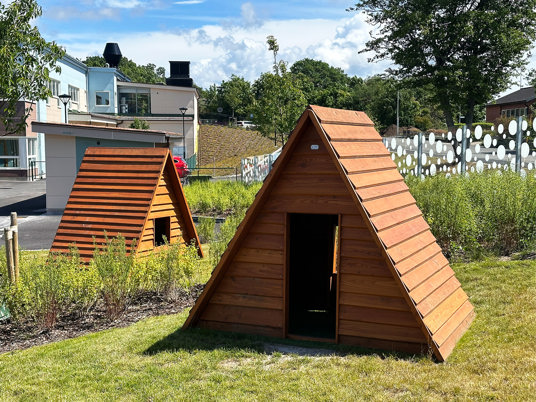 Arkitekten fandt flere favoritter i vores sortiment, som passede perfekt til den nye børnehave. Blandt andet True Nature legehuse, Raw Nature hængekøjer og gummifiguren Frøen med en tunnel gennem maven.