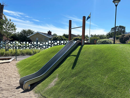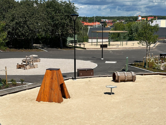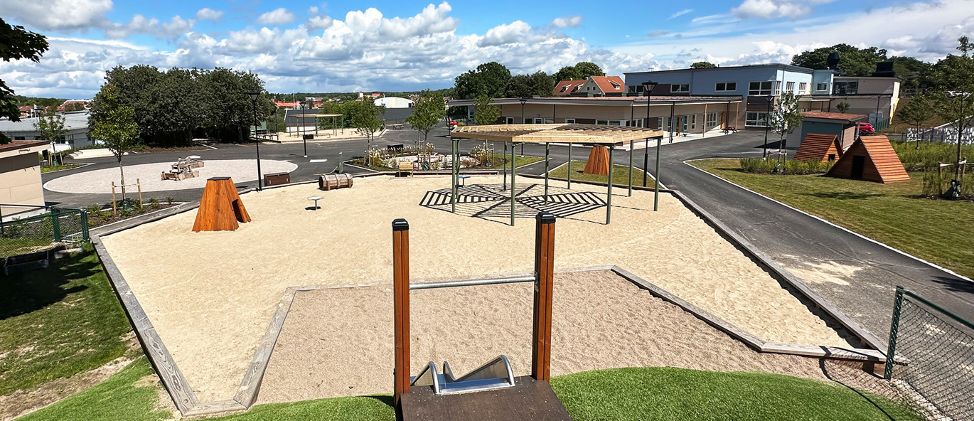 Den nybyggede børnehave i svenske Ronneby rummer spændende lege- og mødesteder, hvor børnene får mulighed for at opleve, undersøge og udforske med alle deres sanser. Her er der fokus på samarbejde, venskab og på at passe på hinanden, dyrene og naturen. Det rummelige udemiljø tilbyder alt fra spontan leg, kreativitet og boldspil til motorik- og balanceaktiviteter. Her er der rig mulighed for bevægelsesglæde på de forskellige underlag; asfalt, faldunderlag, grus, græs og kunstgræs.