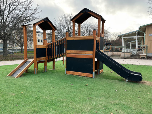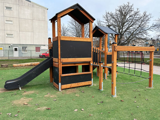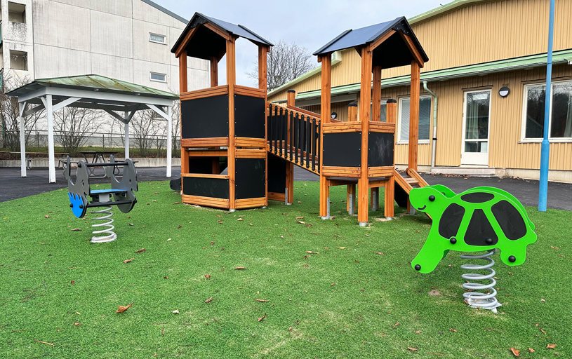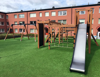 En komplet legeplads til børnehaven leveret og samlet nemt og hurtigt. Det var meget nemt med én leverandør, mente kunden.