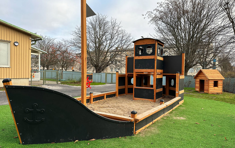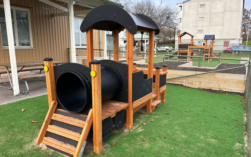 Det var alle mand på dæk, da Björinge børnehave skulle have ny legeplads. Personalet var med på udformningen fra starten og sørgede for, at der blev valgt de bedste løsninger for børnene. Resultatet er et dejligt udendørs miljø at lege i med kreative produkter fra flotte både med sandkasse til sjove rutsjebaner.