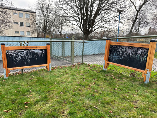 Kunstgræs i næsten hele området giver en dejlig følelse for børnene, da det er blødt og rart at løbe og lege på. Det giver også mindre mudder, når det regner!