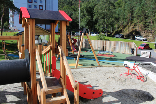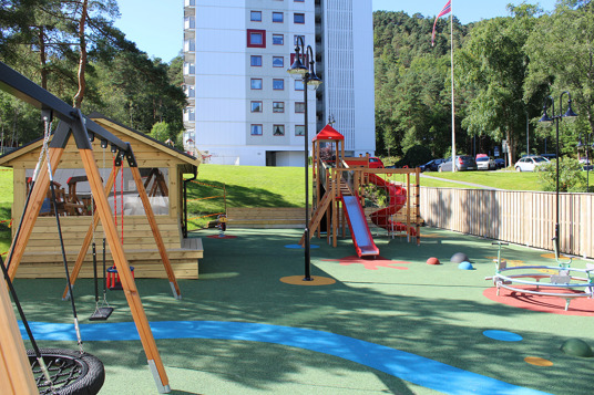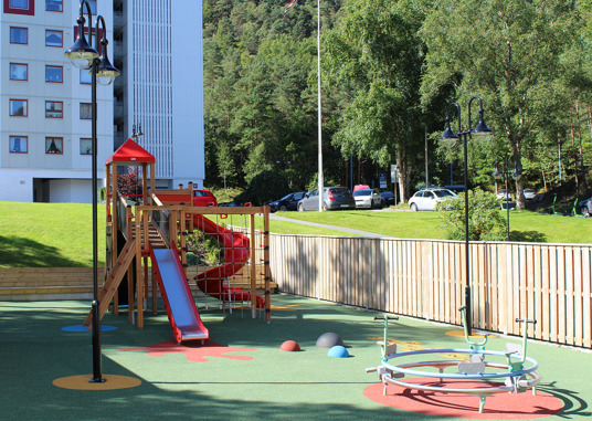 I boligforeningen Løvåsen i Bergen i Norge, ønskede beboerne et samlingssted, hvor børnene kunne slippe fantasien og kreativiteten løs i leg. Det var også vigtigt, at legepladsen indeholdt inkluderende udstyr til alle aldersgrupper.