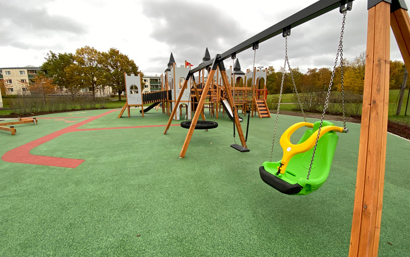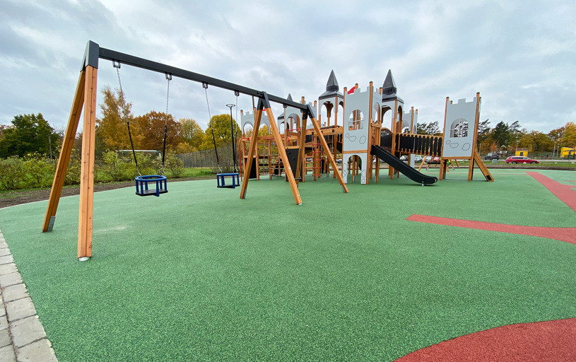 Valget faldt på det kongelige slot Kronborg, som er en af de største legepladser i TRESS-serien. Med en højde på over 5 meter og et samlet legeområde på 10 x 9 meter kan alle de små prinser og prinsesser i området nu lege, klatre og løbe rundt på de forskellige platforme.