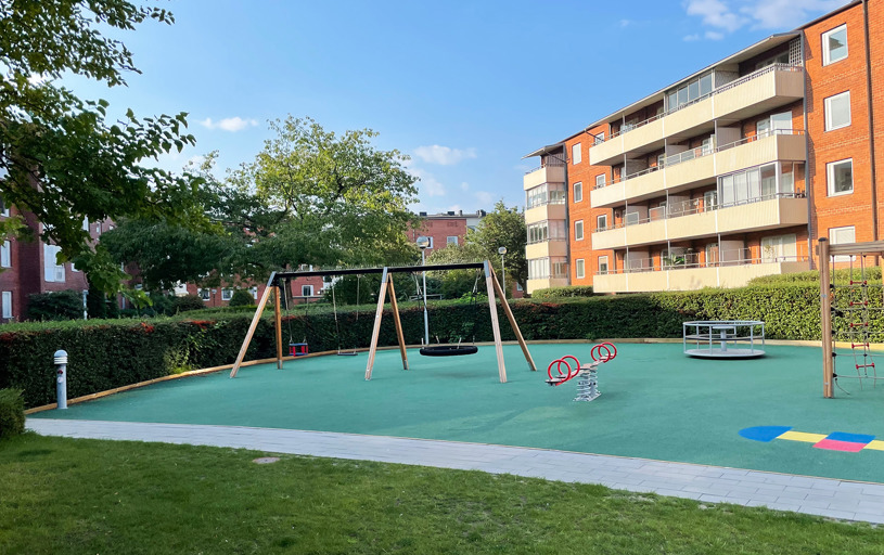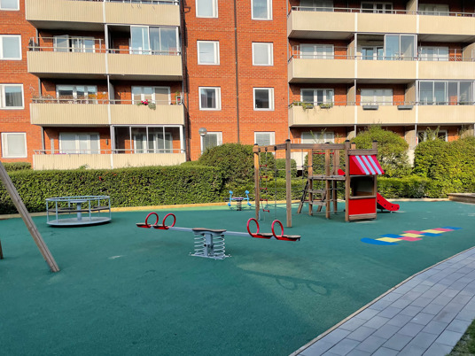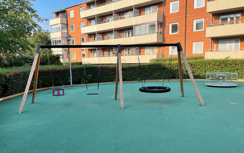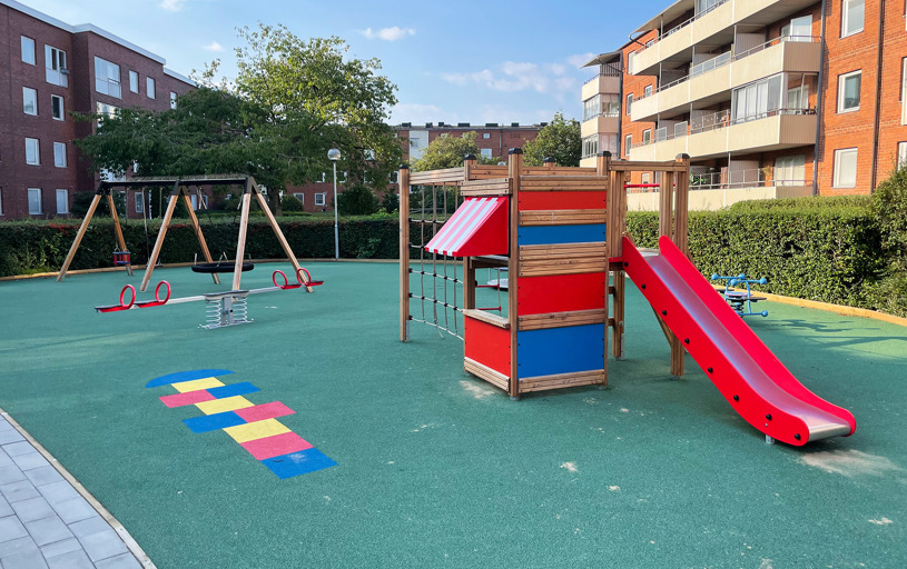 Resultatet blev en fuldt udstyret legeplads, hvor alle børn i boligforeningen trygt kan lege sammen. Og en tilfreds kunde, der sparede både tid og penge.