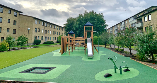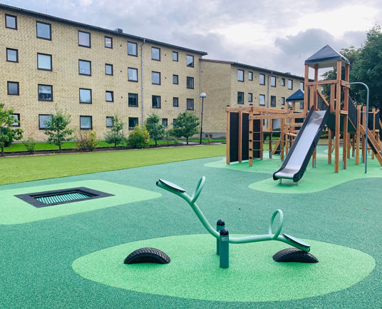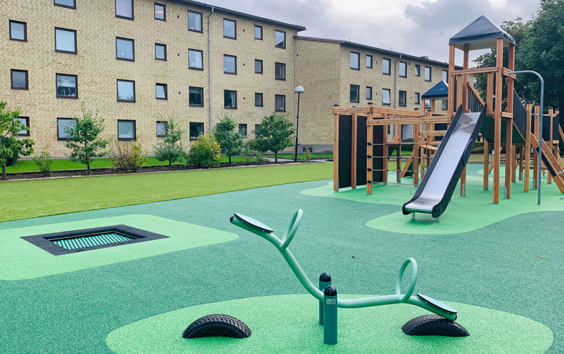 Boligforeningen BRF Lyckegården har skabt en helt ny gårdhave, hvor Piratslottet Nature er i centrum og giver børnene masser af legeudfordringer. Gyngestativ med kammeratgynge, sædegynge og babygynge giver plads til alle. Trampolinen og vippen er en værdsat tilføjelse.