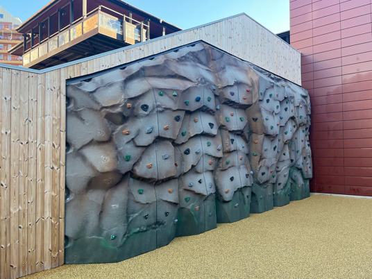 Klatrevæggen er arkitekttegnet og specielt tilpasset til netop denne placering. Boulder Rocks Klippevæggen byder på mange spændende udfordringer for både unge og ældre klatreentusiaster.