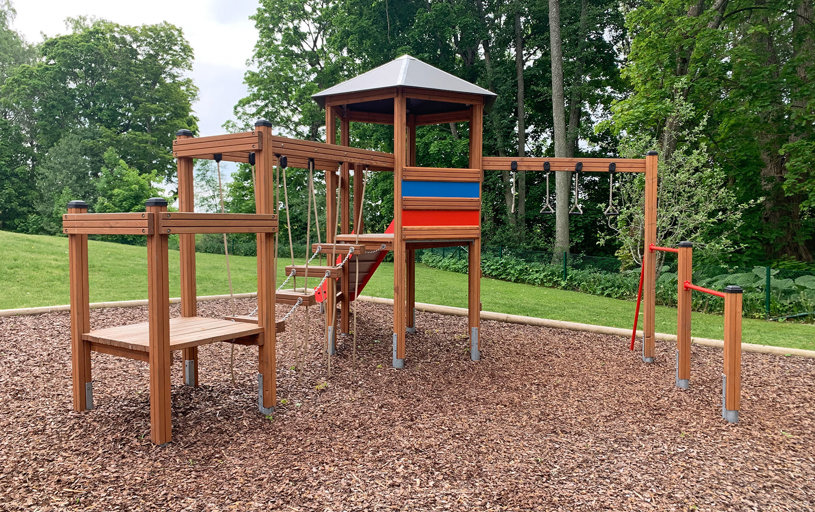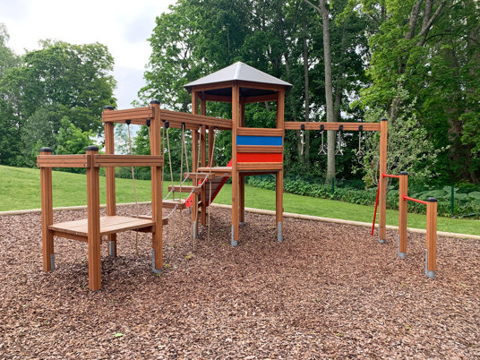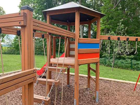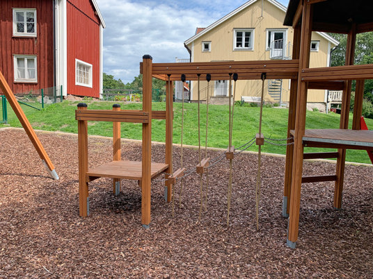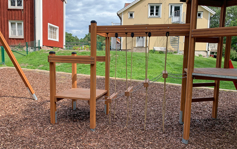 Børnene havde også et stort ønske om en vennegynge, en rutsjebane og andre former for udfordrende legemuligheder. Klatrekanten indfrier mange af ønskerne med både rutsjebane, hængebro, kolbøttestænger og armgang.