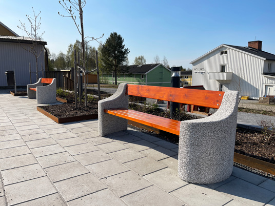 Bjurholm centrum har fået et fantastisk ansigtsløft. Nye udendørsmøbler og en aktiverende legeplads har givet byen et nyt samlingssted.