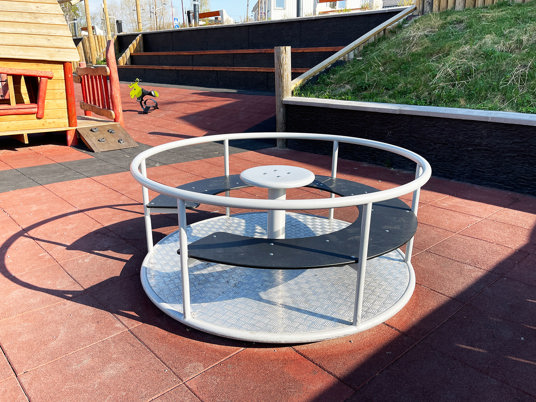 Et skønt mødested for alle aldre. Du kan klatre, snurre, balancere og gynge og tage en pause, når du har brug for det. Faldunderlaget skaber en ensartet og sikker legeplads.