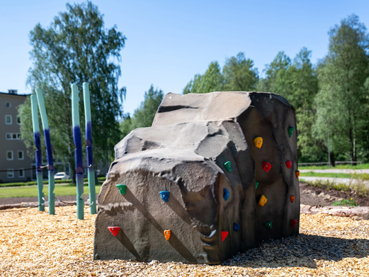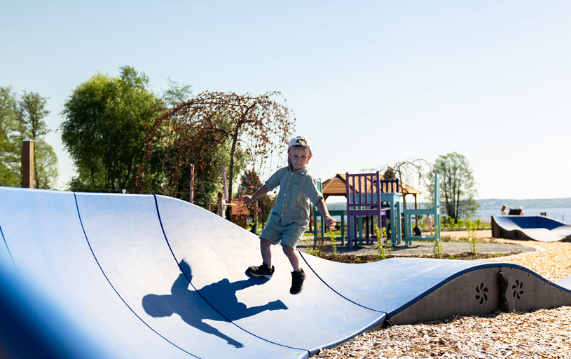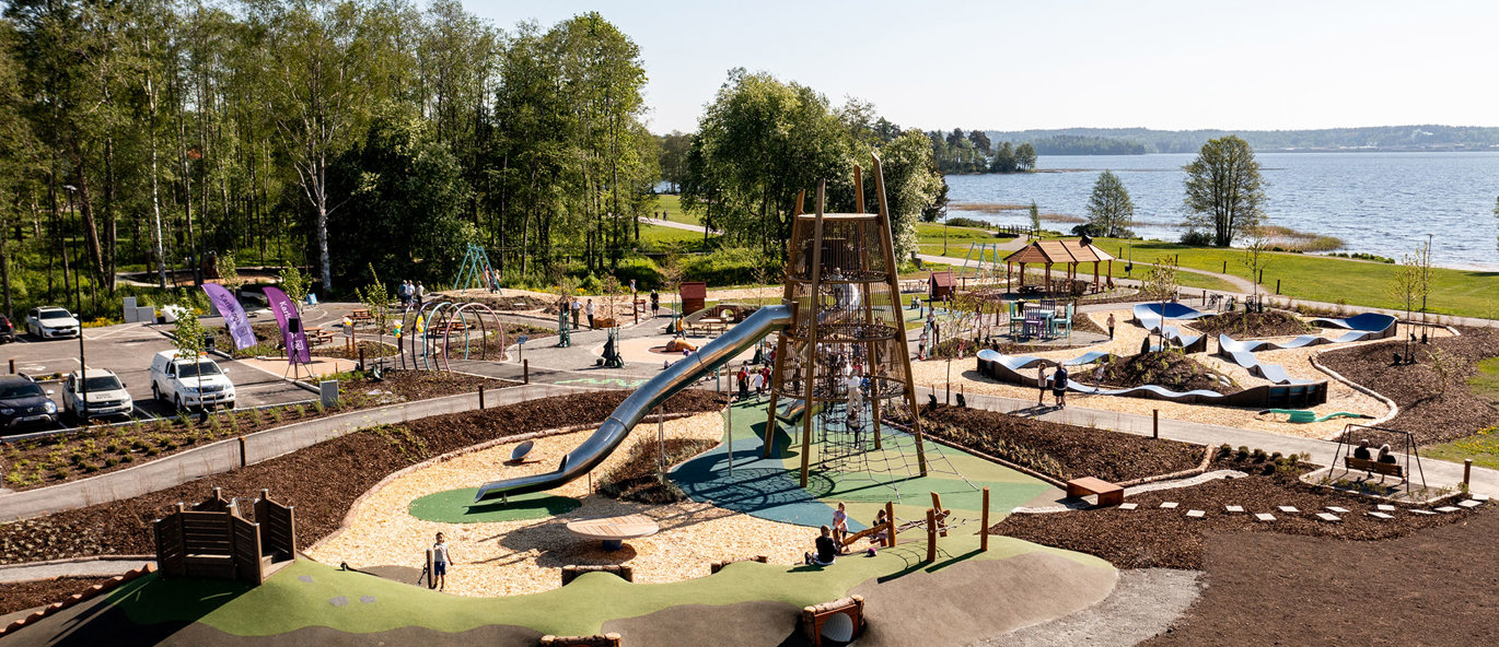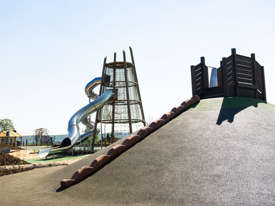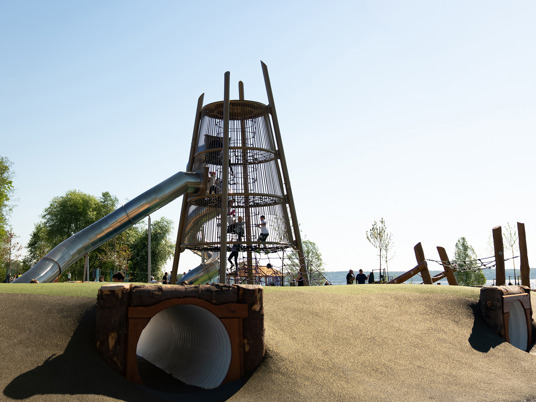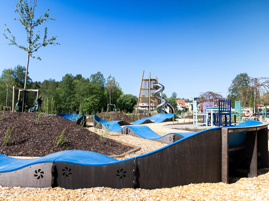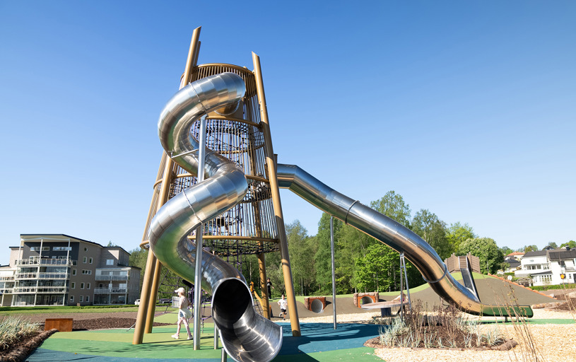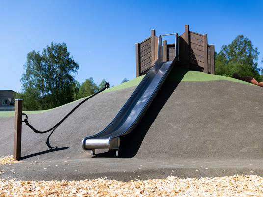 Ønsket var en stor og høj legeplads i midten af parken. Valget faldt på Gigantis Klatretårnet, som med sine 9 meter til toppen er en mægtig oplevelse. At klatre hele vejen op til toppen og se udsigten giver en rigtig wow-følelse! Tag rutsjebanen ned og få en svimlende fornemmelse i maven!