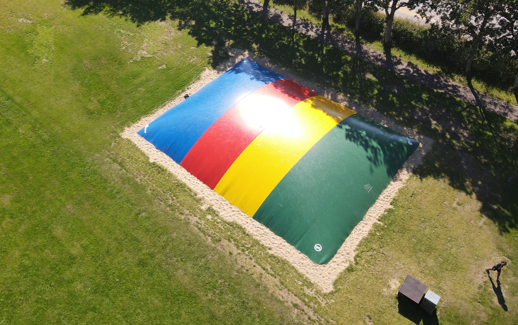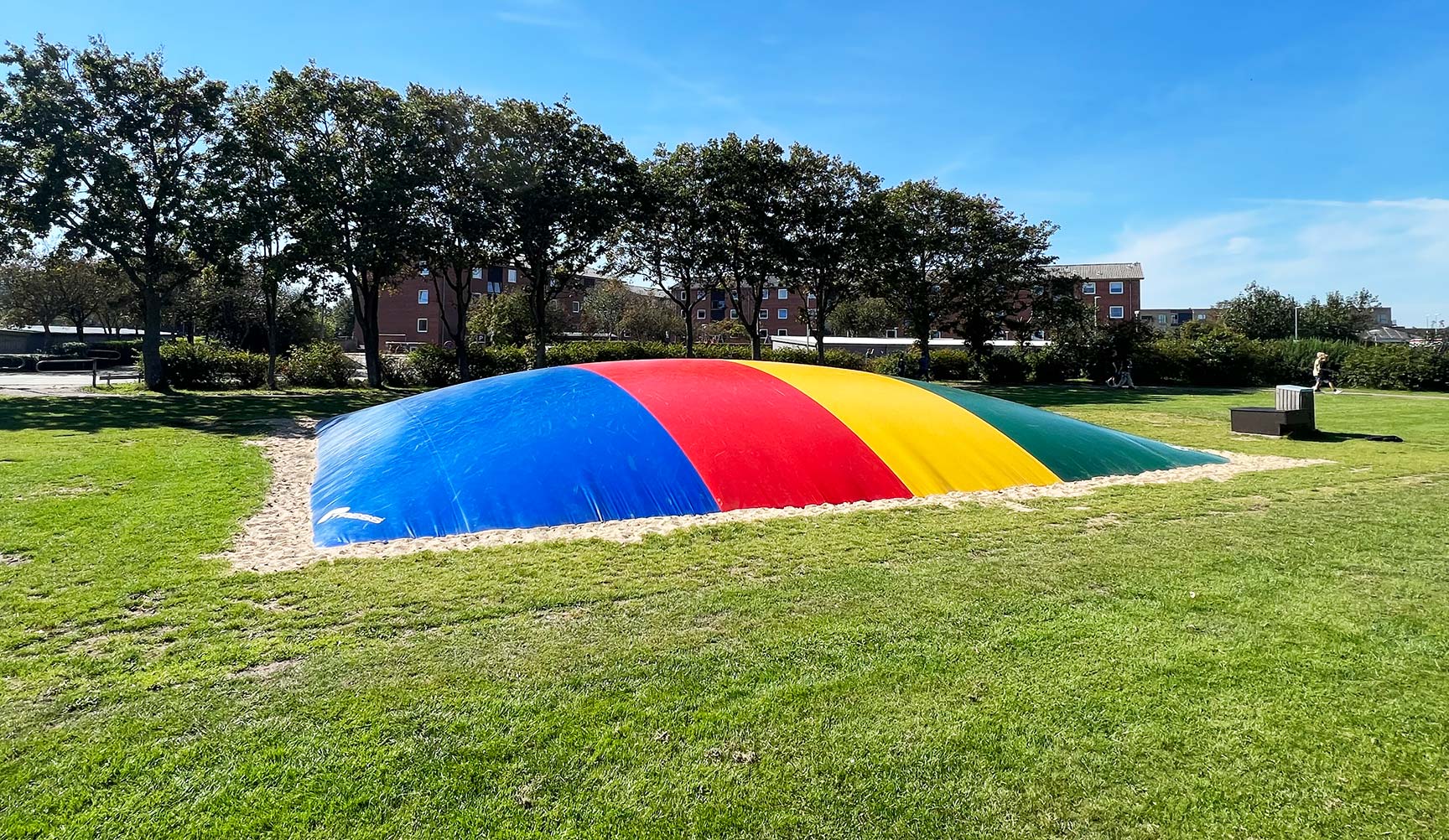 Hoppepuden blev valgt med striber i fire forskellige farver, som lyser flot op i landskabet. Hoppepuden er hurtigt blevet et populært samlingspunkt for både børn og unge.