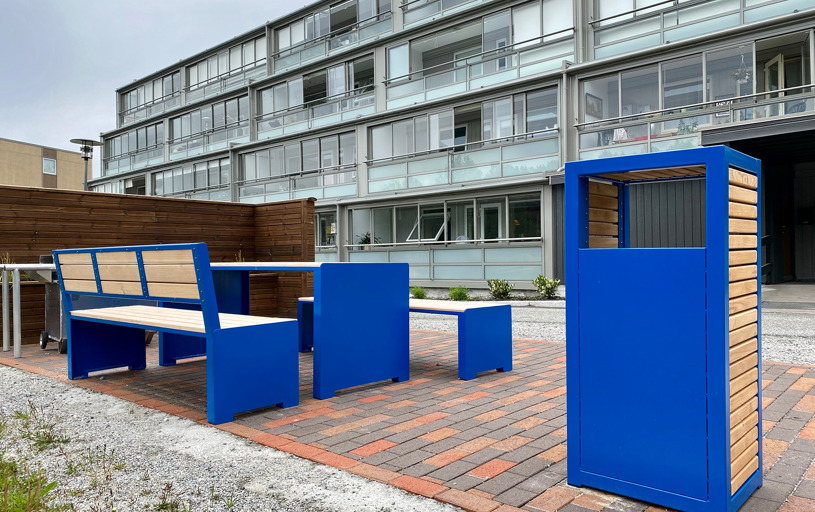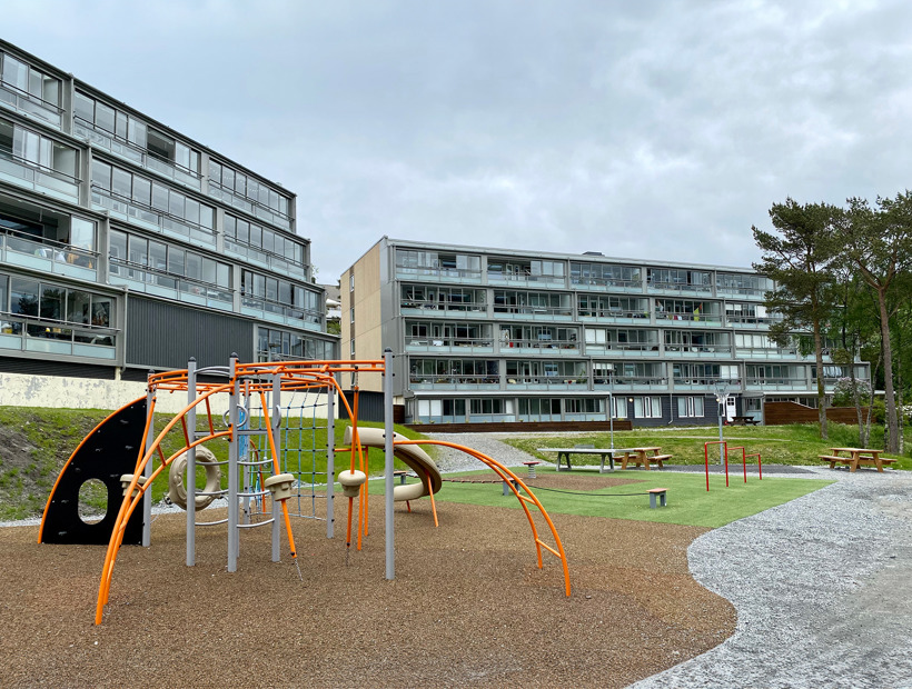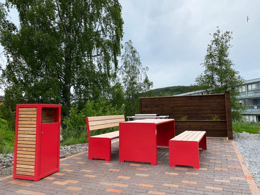 Ambitionenen var at skabe et attraktivt boligområde – og her passer parkmøblerne fra Mobilis Design perfekt ind. Området er bilfrit og børnevenligt med egne legepladser og adgang til naturen lige rundt om hjørnet. Et herligt sted at bo for både børn og voksne.