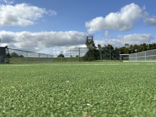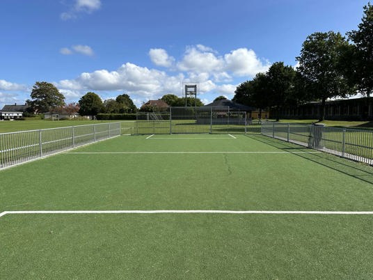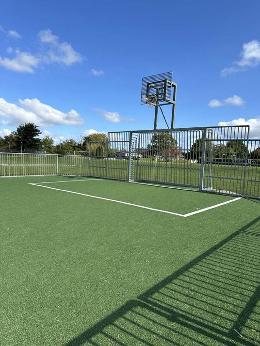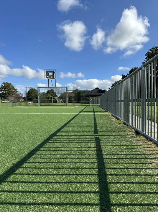 Banen er anlagt med en flot fliseafslutning mellem banens kunstgræs og det omgivende naturgræs. Fliserne fungerer som en barriere, der forhindrer naturgræsset i at vokse ind i kunstgræsset, hvilket reducerer behovet for regelmæssig kantpleje. Fliseafslutningen hjælper desuden med at sikre god dræning, da den forhindrer vand i at samle sig langs kanten af de to græsarealer.