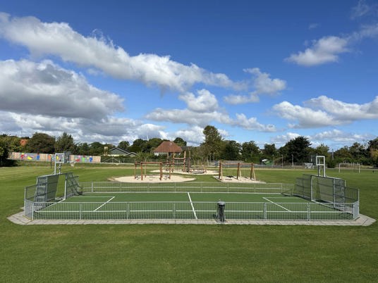 THOR-multibanen har et "gennemsigtigt" udtryk, som passer godt ind i skolens omgivelser – og samtidig har den fordel, at det er nemt at se, hvad der foregår på banen. Derudover tillader tremme-designet både lyd og luft at passere igennem, hvilket betyder, at lyden af bolden ikke bliver reflekteret tilbage som en kraftig larm, men i stedet spredes i omgivelserne.