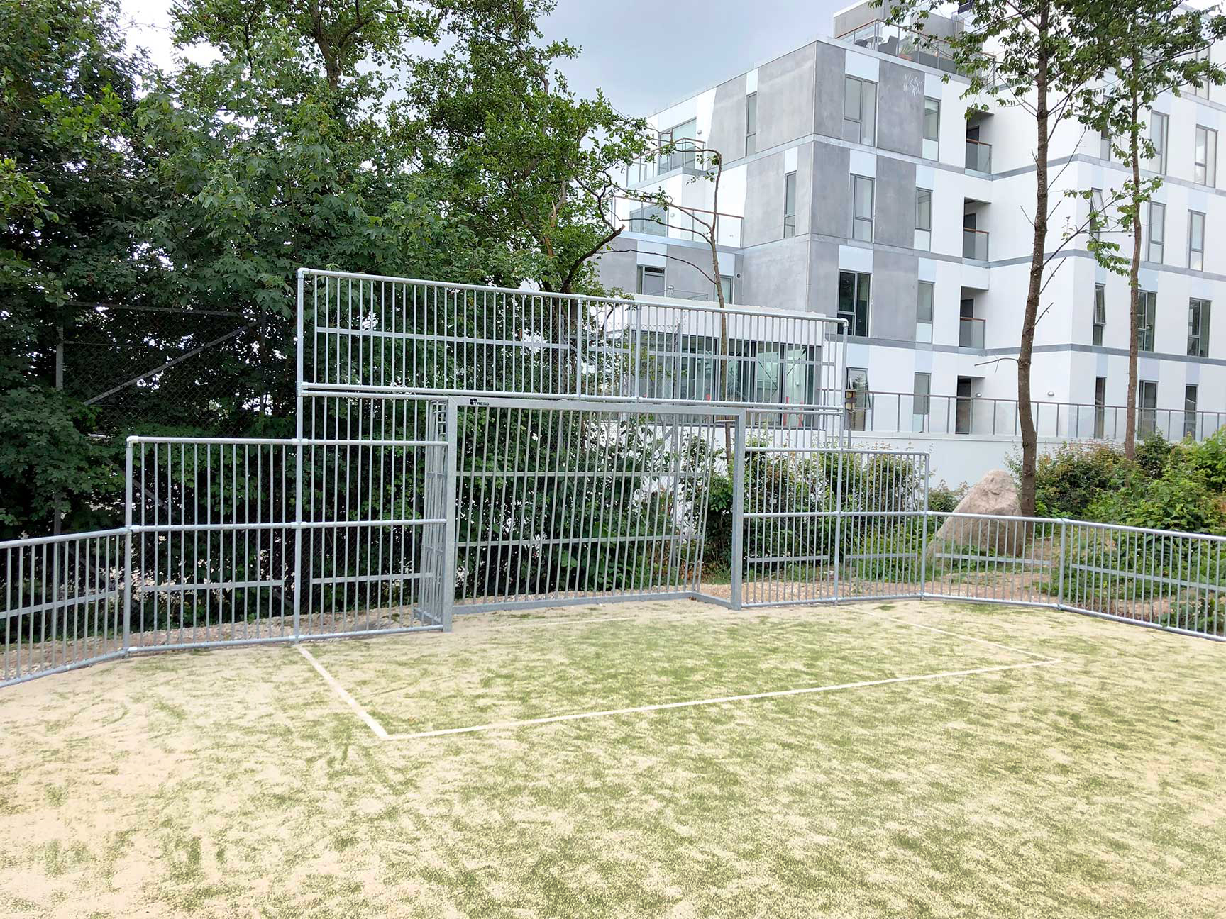 Multibanen egner sig til flere forskellige slags boldspil, som enten kan spilles på langs eller på tværs af banen – der er nemlig et stort mål i hver ende og to små mål på hver langside.