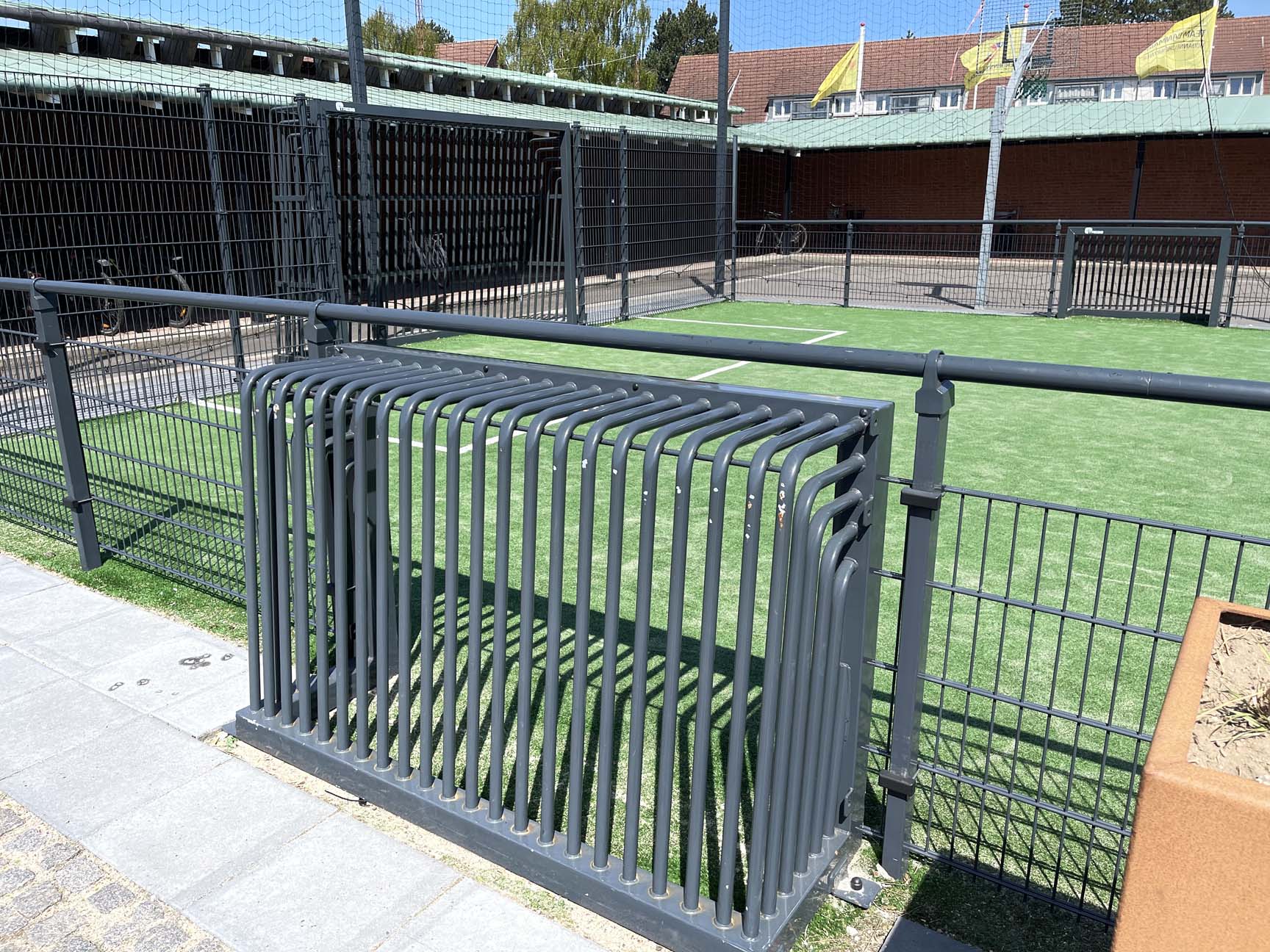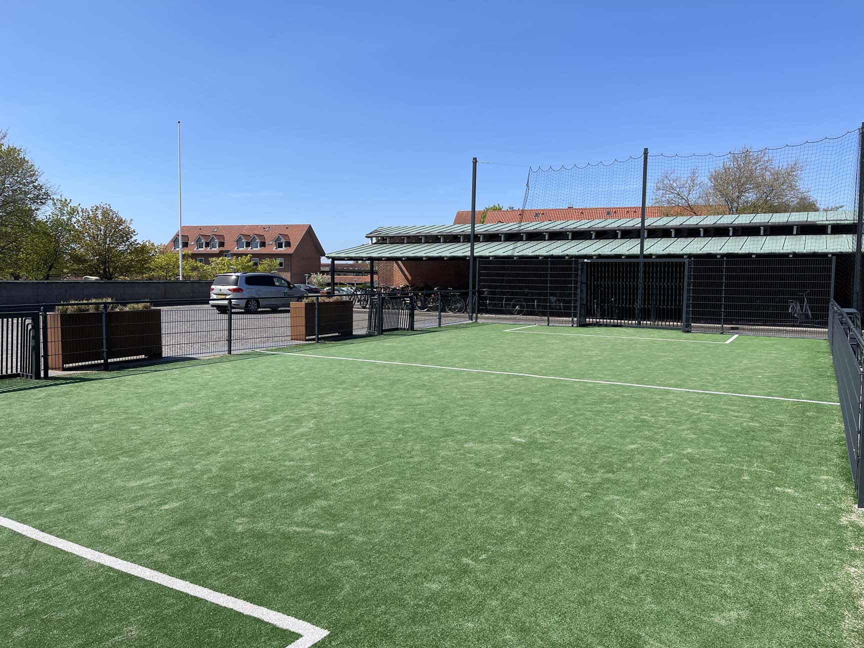 Med en multibane i varmgalvaniseret stål og grønt kunstgræs har Business College Syd fået en æstetisk flot og vedligeholdelsesfri multibane, som passer godt ind i omgivelserne.