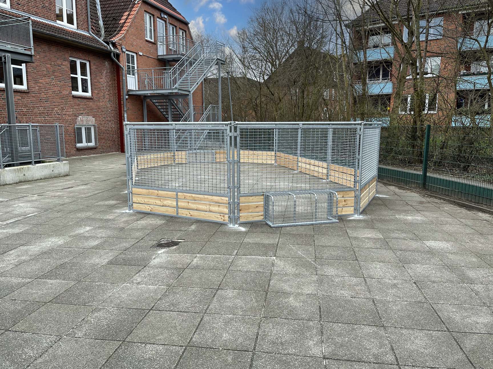 Ejderskolen i Rendsborg i Tyskland ønskede en mindre multibane til skolegården – og har med pannabanen fået en løsning, der udover boldspil også kan bruges til alternative aktiviteter som fx udendørs undervisning med plads til store armbevægelser, udendørs træning eller tumlelege for de mindste.